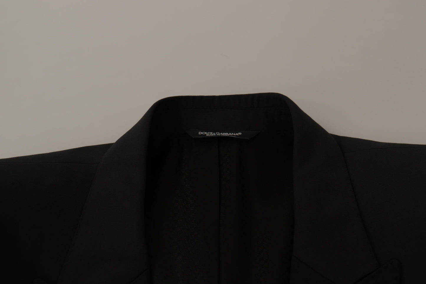 Step into the spotlight with an air of Italian elegance wearing this luxurious two-piece Martini blazer from Dolce & Gabbana. This exquisite ensemble, perfect for the most sophisticated occasions, includes a sharp single-breasted blazer and a matching vest. The dark blue hue exudes a timeless appeal, while the premium blend of virgin wool, silk, and polyester offers a sublime mix of comfort and style. Meticulously crafted in Italy, this set demonstrates the brand’s commitment to unparalleled quality and attention to detail. Elevate your formal wear collection with this statement piece.
