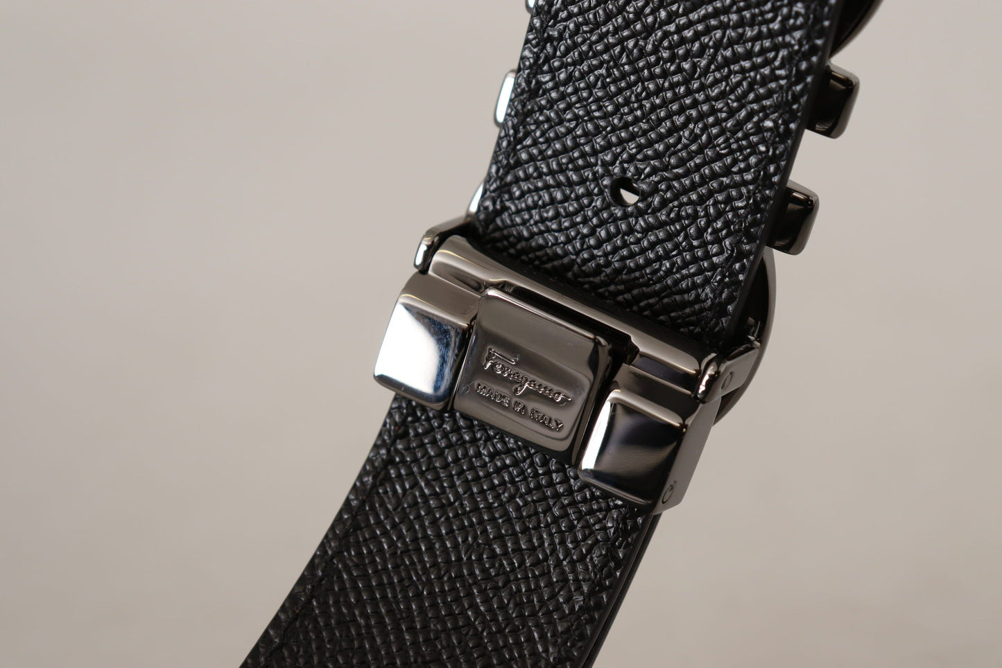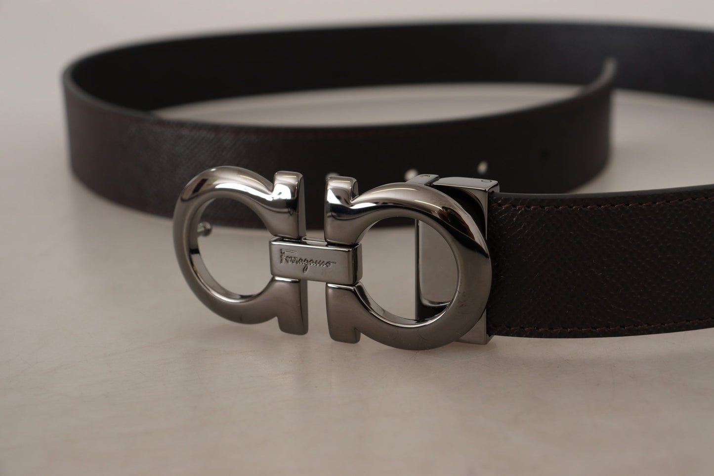 Indulge in the epitome of sophistication with our stunning, 100% authentic Salvatore Ferragamo reversible belt. This exquisite piece comes new with tags, accompanied by a dust bag and box, ready to complement your wardrobe. Crafted from sumptuous calf leather, this belt features a sleek silver buckle that adds a touch of elegance to any outfit. Designed and made in Italy, it offers versatility with its reversible T.Moro brown and black sides.