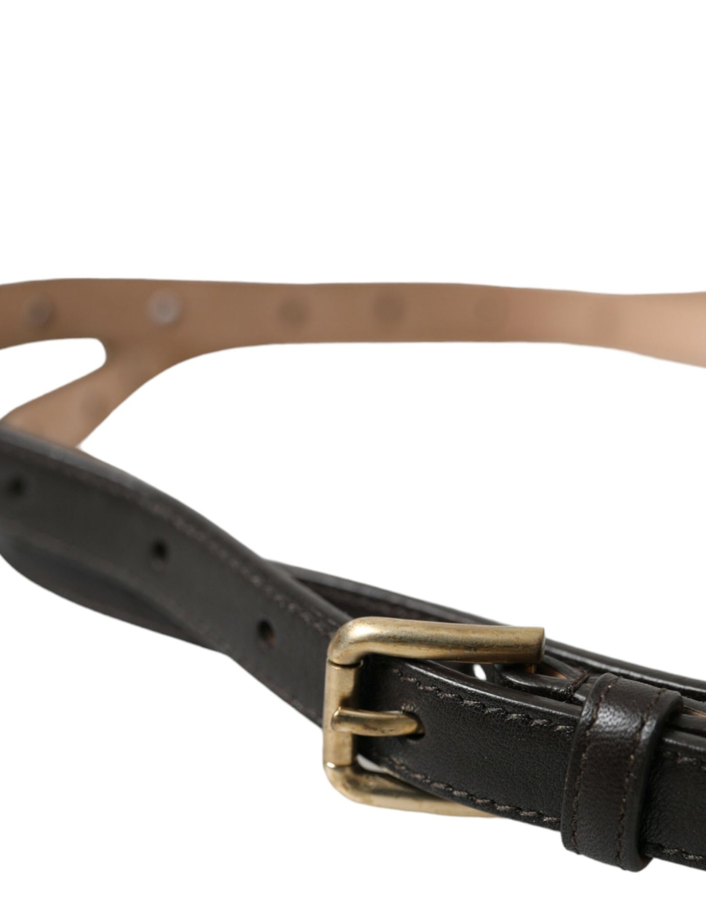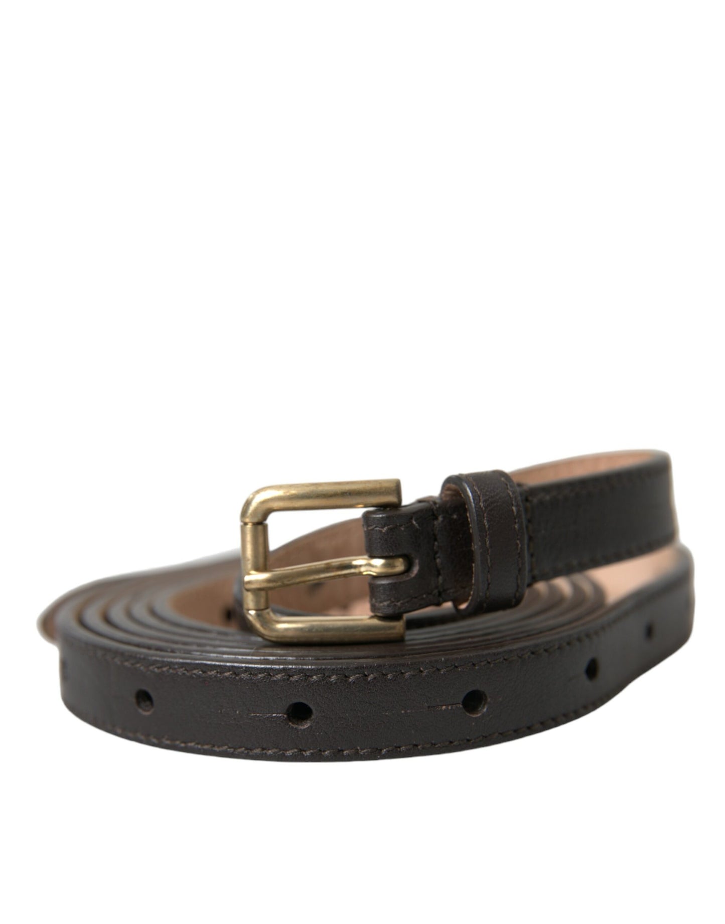 Dark Brown Leather Gold Metal Buckle Belt