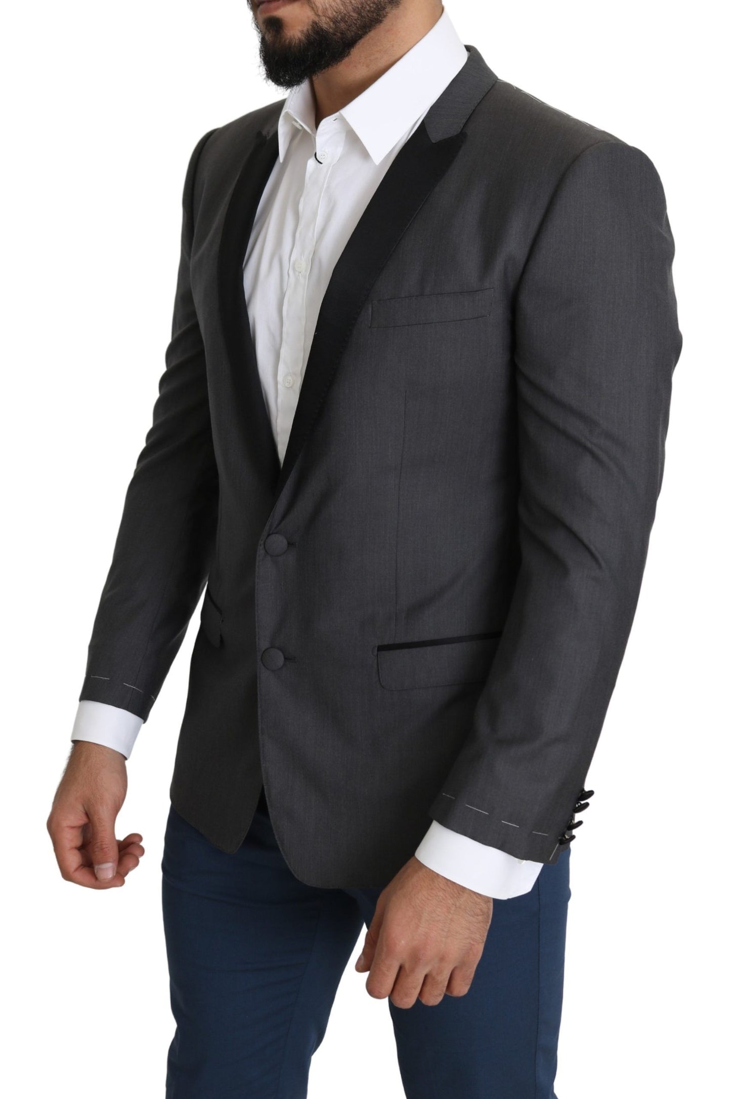 Elevate your style with this stunning, formal Dark Gray Silk Blazer from the esteemed Dolce & Gabbana SARTORIA collection. Tailored to perfection, this luxurious single-breasted blazer is crafted with high craftsmanship in Italy, boasting a sleek slim fit, a two-button closure, structured lapels, and sumptuous silk blend fabric. Complete with three inner pockets, buttoned cuffs, and a single back vent, it promises to add an exclusive touch of sophistication to your wardrobe.