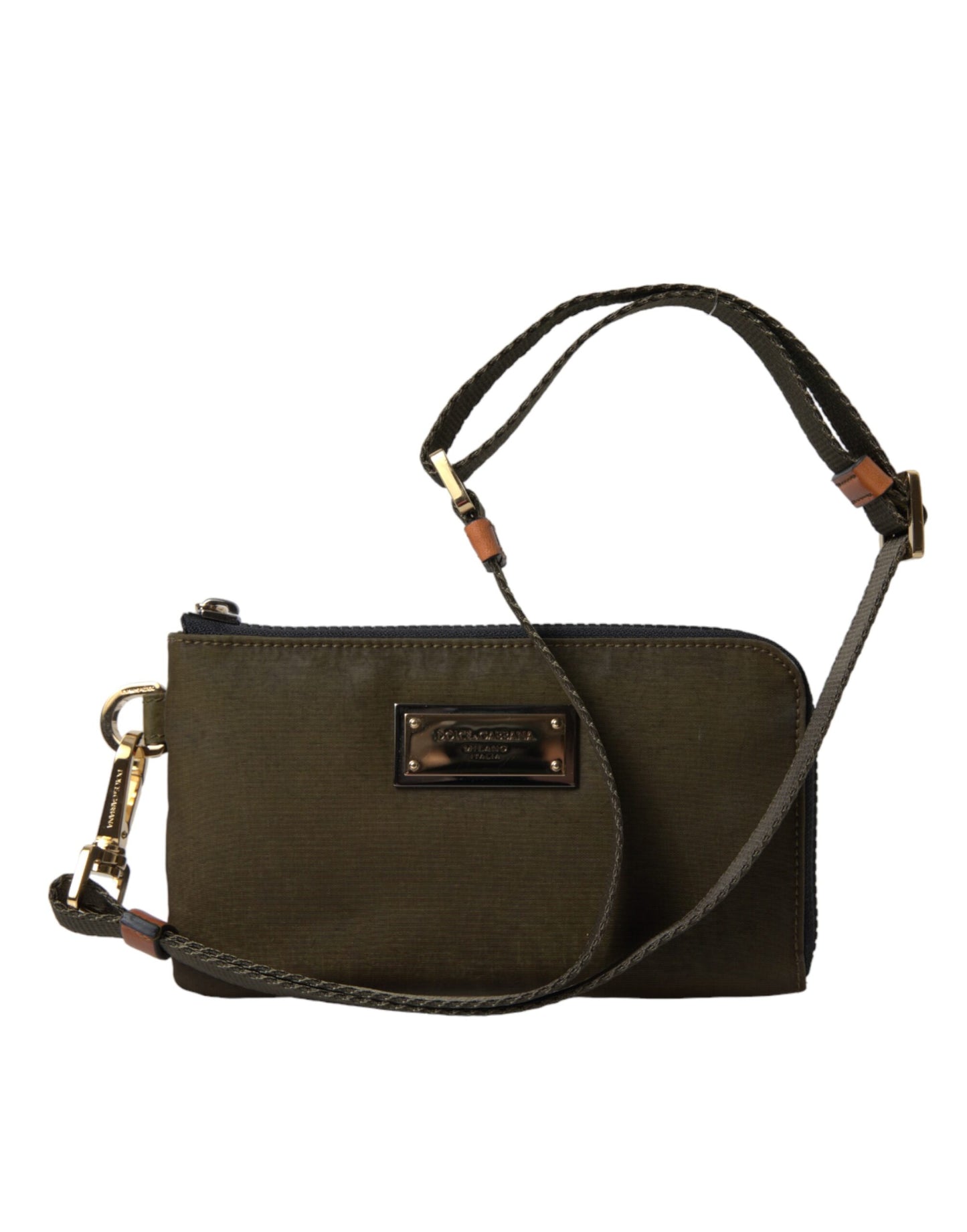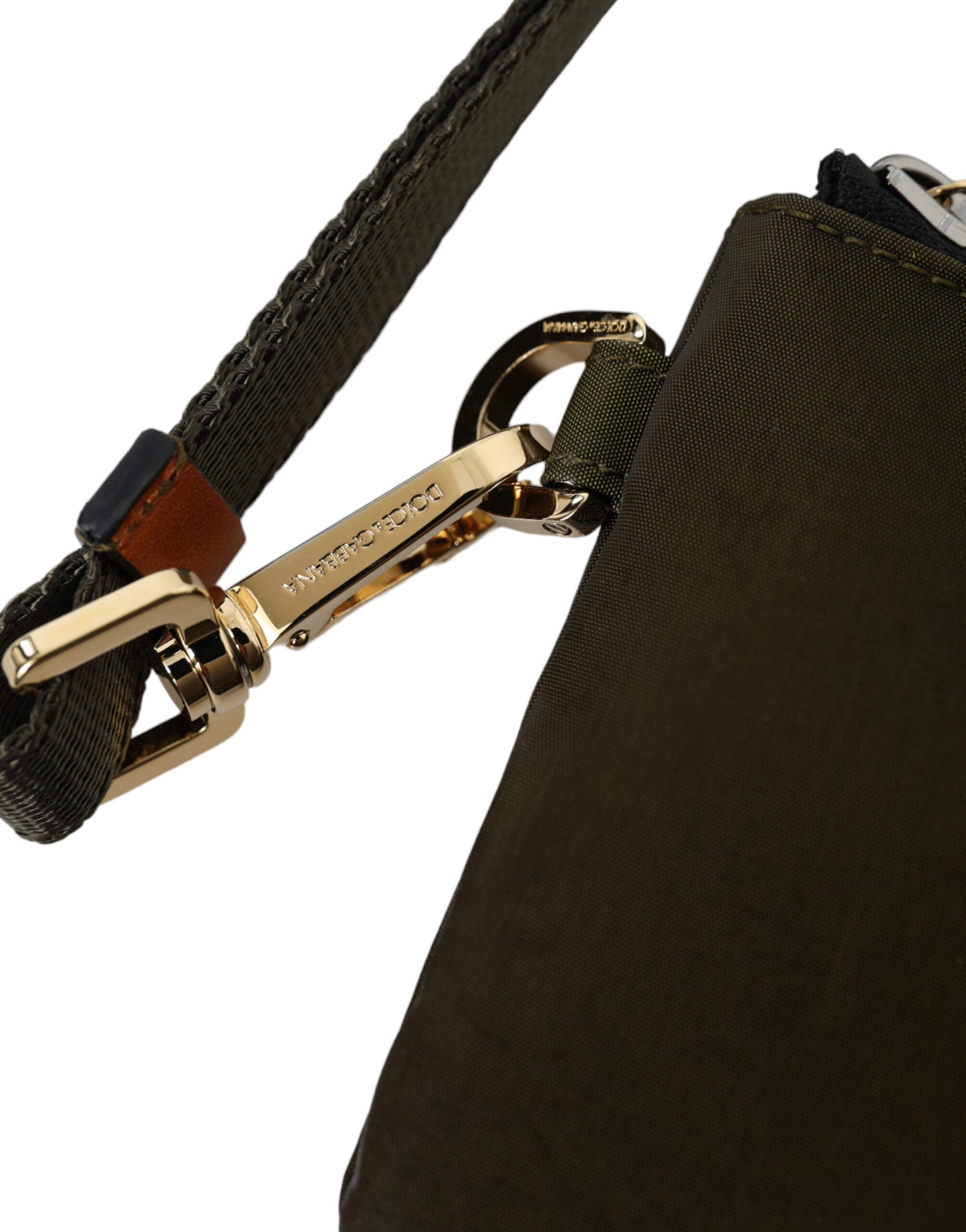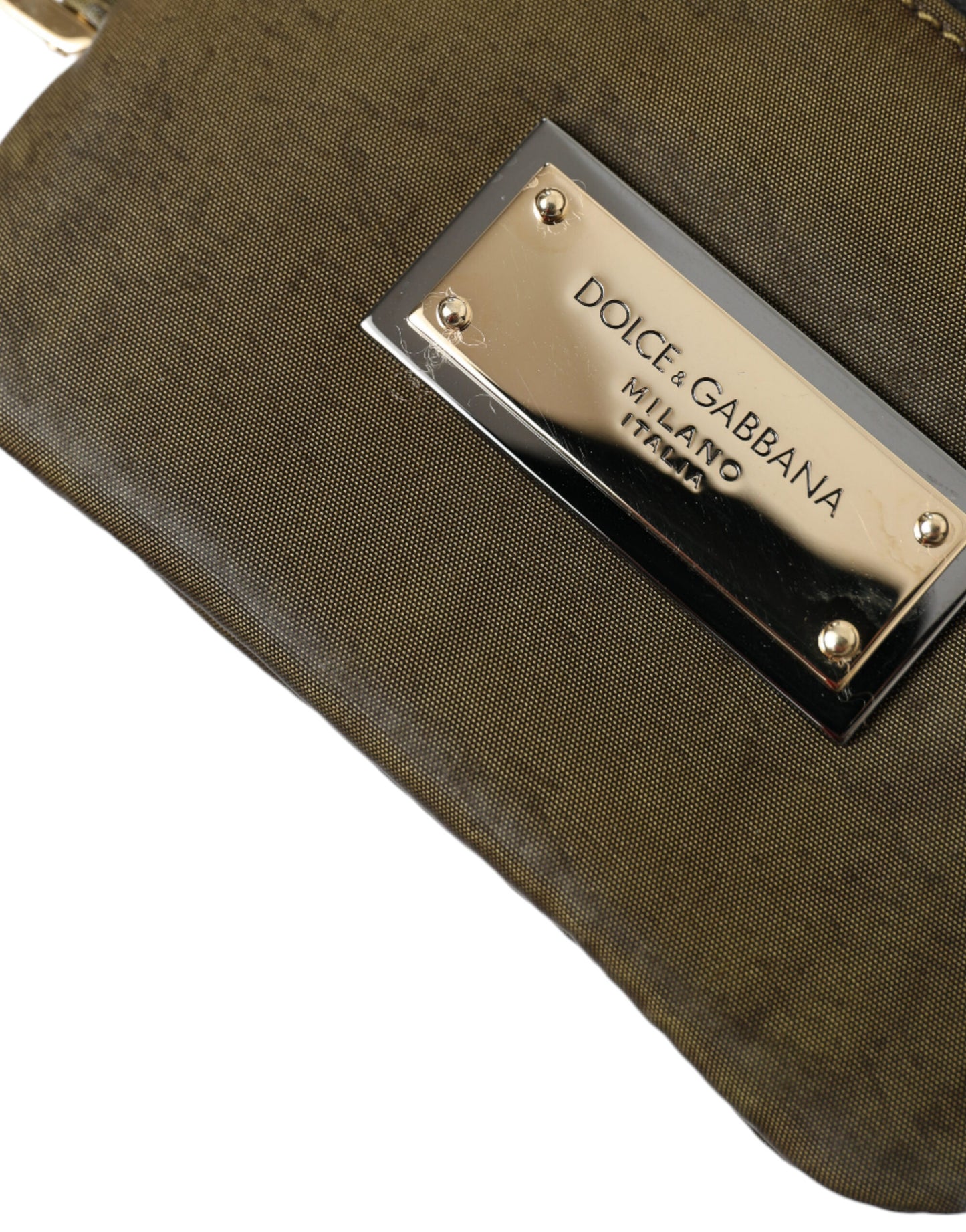 Dark Green Nylon Logo Plaque Keyring Pouch Clutch Bag