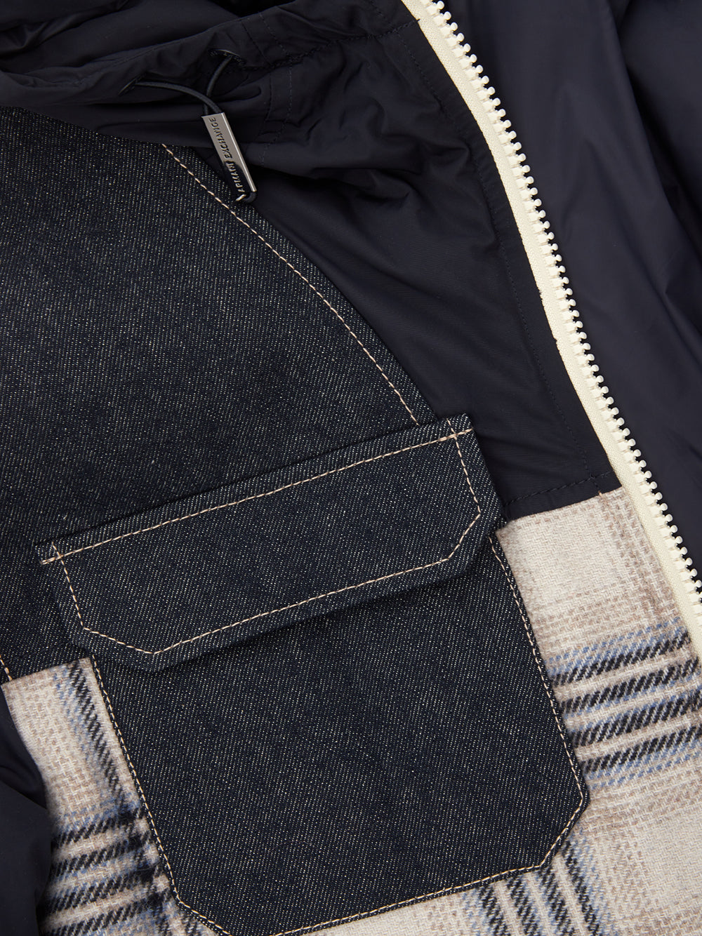 Step into comfort and style with this stunning Quilted Denim Jacket from EA7 Emporio Armani. Brand new with tags, this piece embodies casual elegance with its check details and a versatile front zip closure. Featuring two convenient side pockets and additional top pockets for essentials, this jacket also comes with an adjustable hood for a personalized fit. Perfect for those seeking a regular fit garment that doesn’t compromise on design.