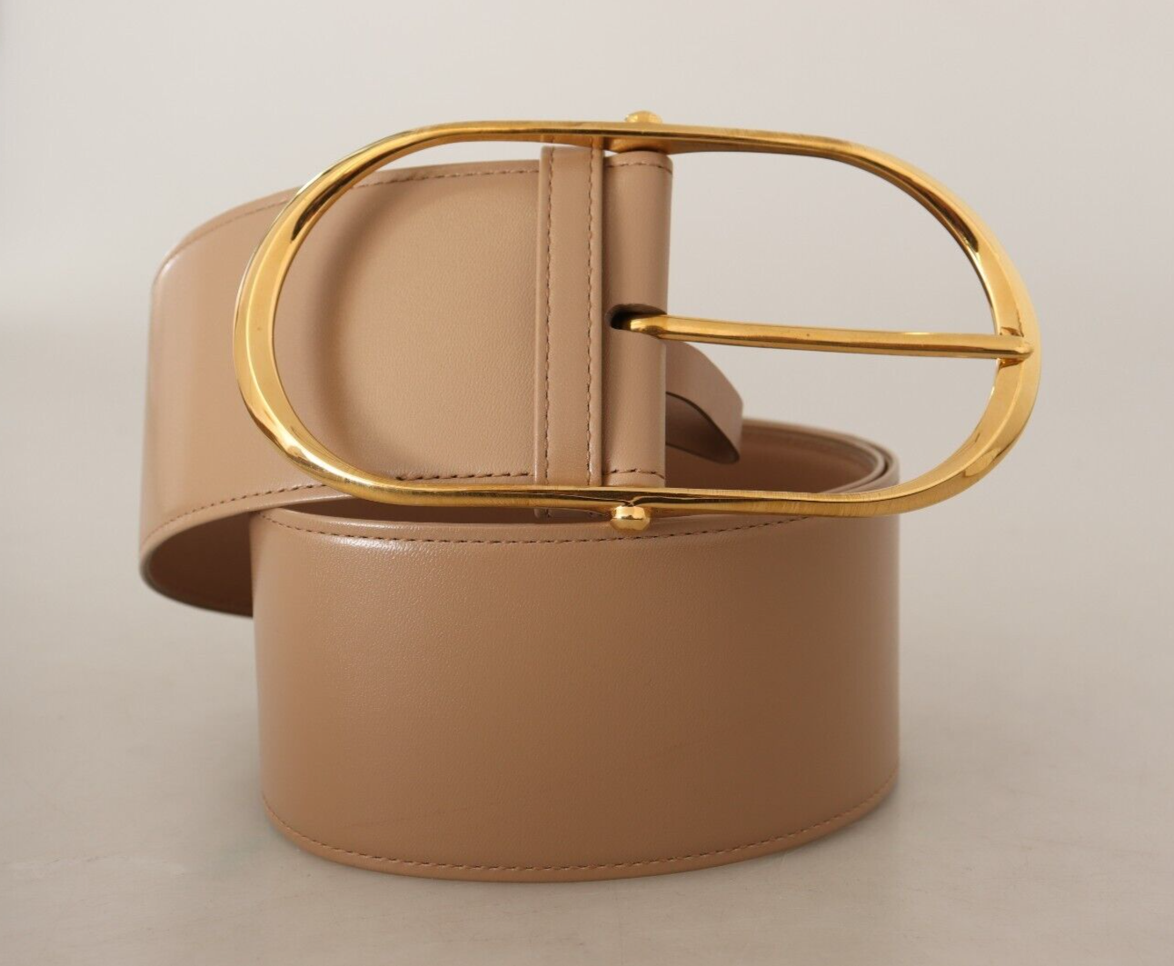 Dolce & Gabbana Beige Leather Gold Metal Oval Buckle Women's Belt