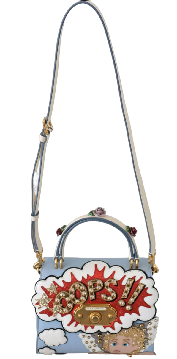 Dolce & Gabbana Blue Leather OOPS Roses Crossbody WELCOME Women's Bag