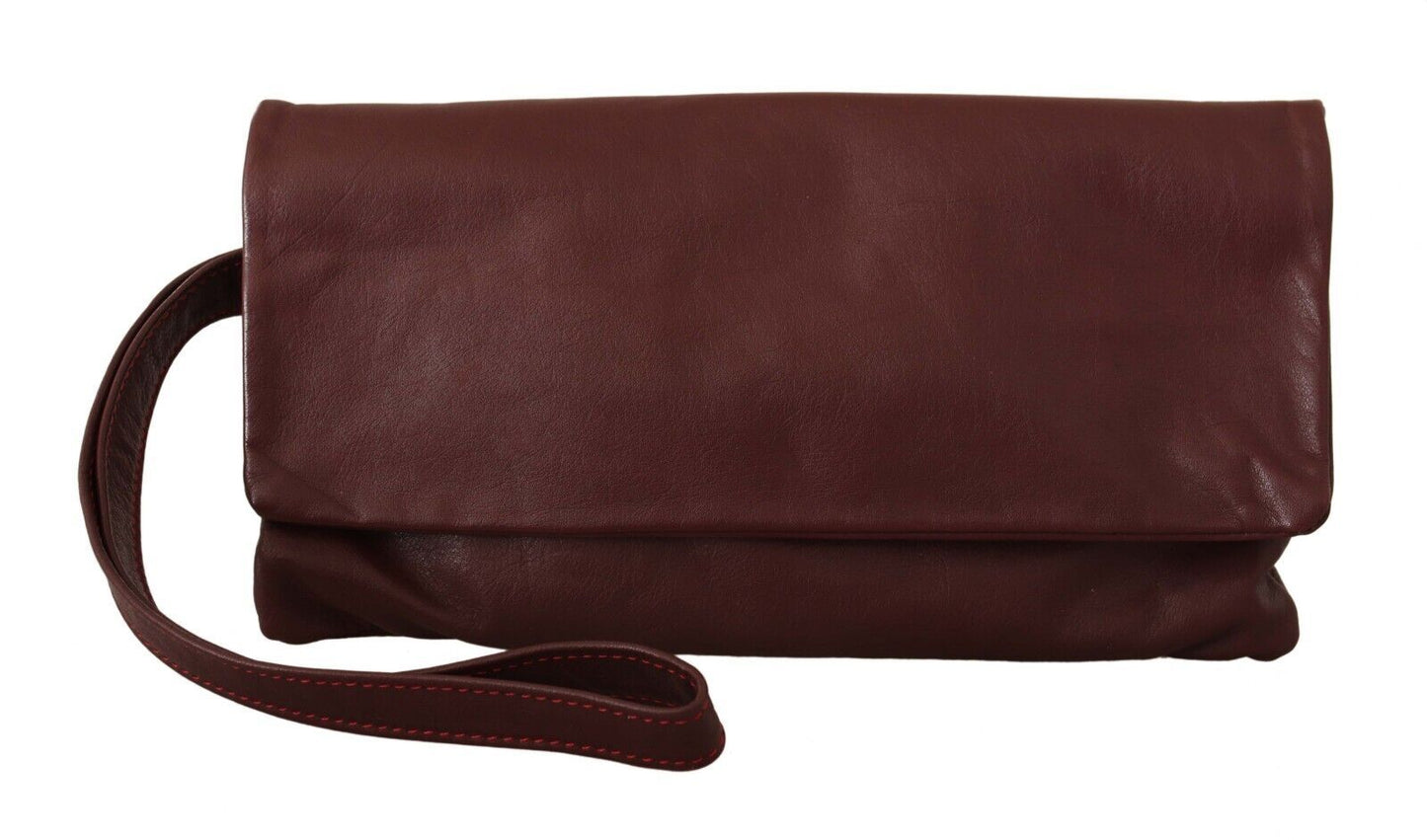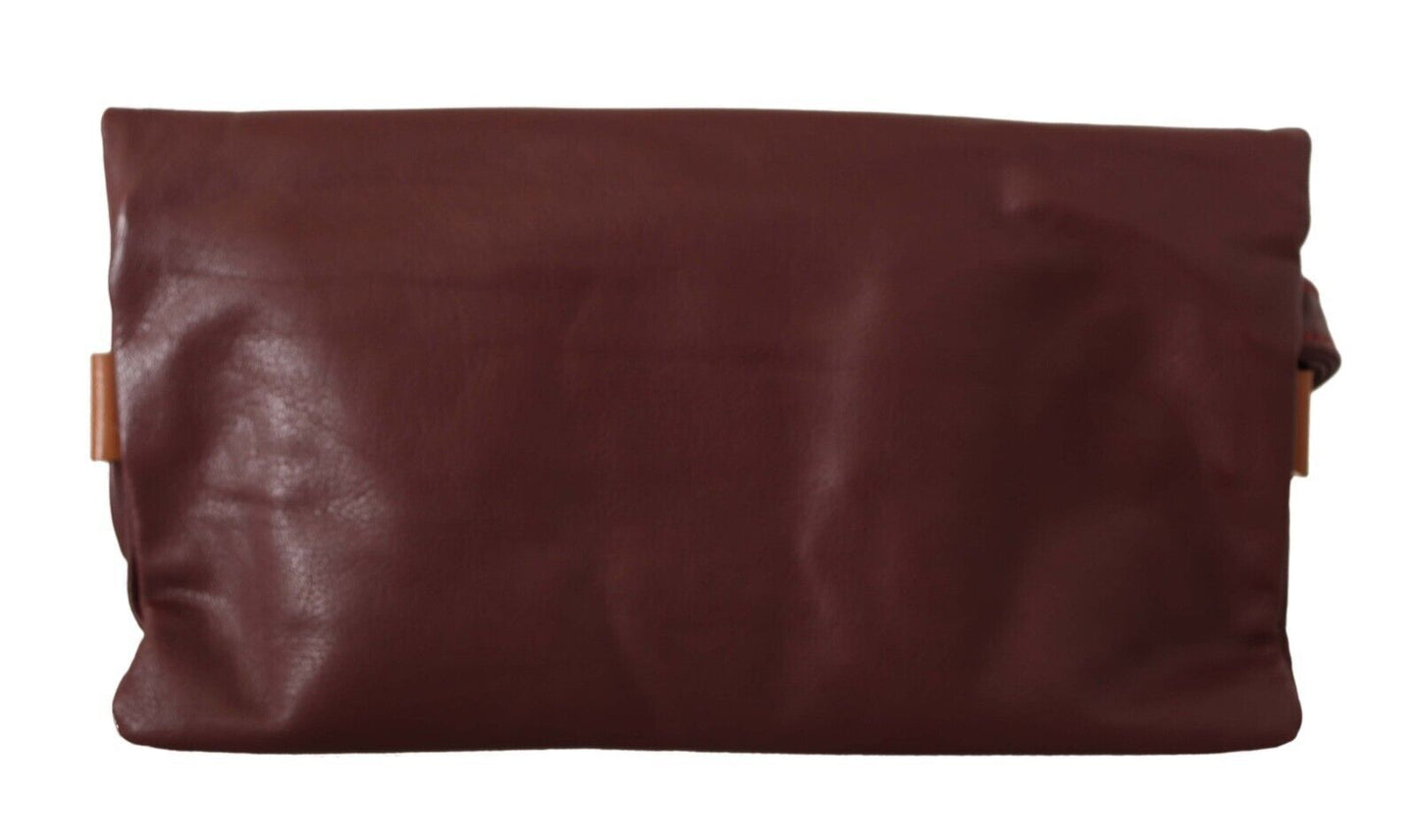 Elegant Brown Leather Clutch with Silver Detailing