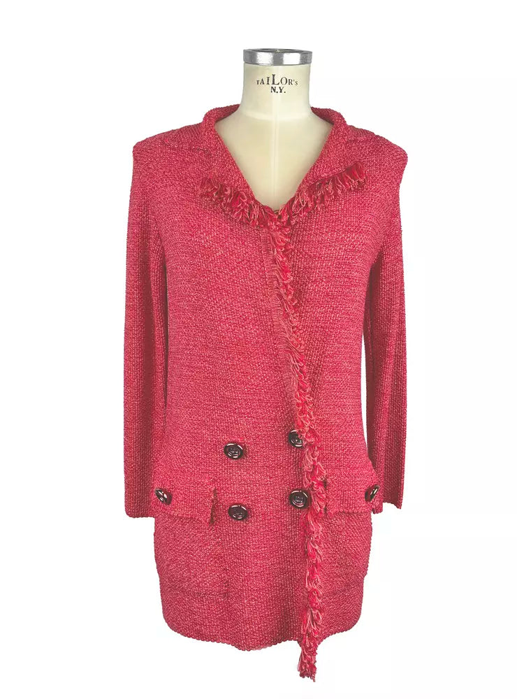 Step out in style with this elegantly tailored Fuchsia V-Neck Longline Jacket. Made with a blend of high-quality materials, its striking color and refined metallic button details exude sophistication. Crafted with care in Italy, this jacket adds a touch of luxury to any outfit.