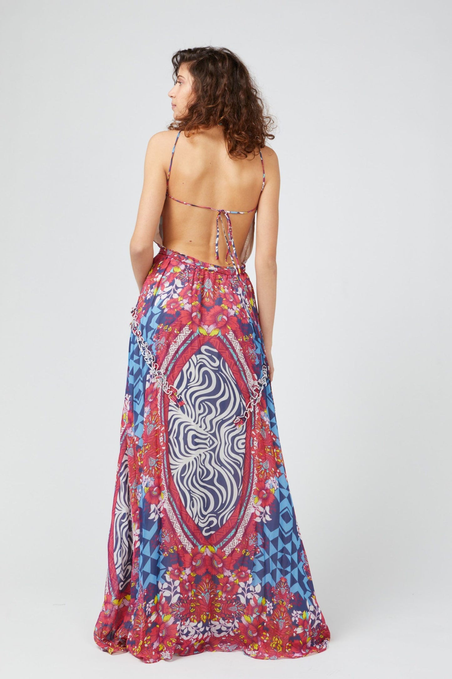 Step into spring with elegance in this stunning Custo Barcelona sleeveless long dress. Its captivating floral fantasy design and eye-catching fuchsia color make it a must-have for any fashion-forward wardrobe. Featuring a tasteful front and rear opening, this piece blends sophistication with a hint of allure.