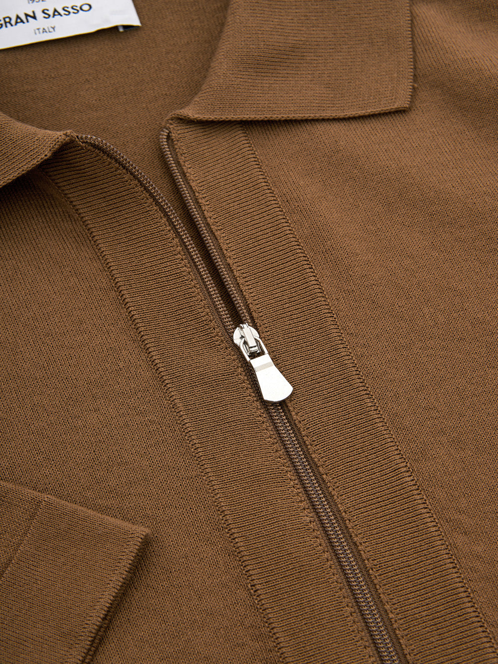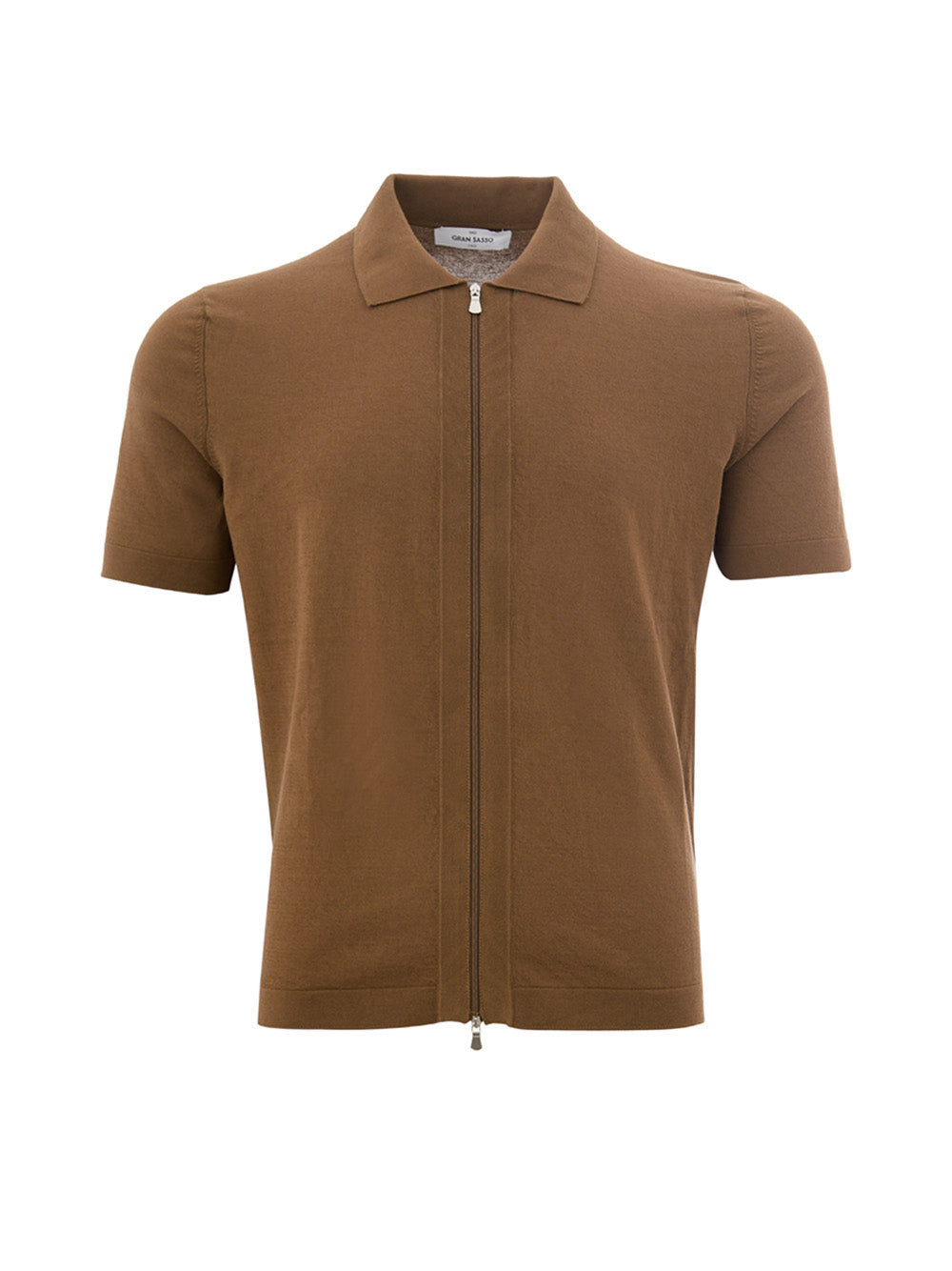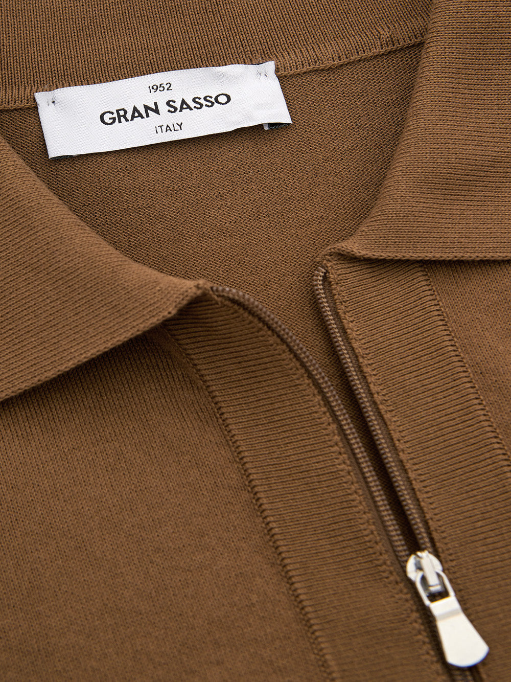 Indulge in the impeccable craftsmanship of Italy with this Gorgeous, brand-new 100% cotton polo shirt from Gran Sasso. Featuring a sleek brown hue, a convenient full zip front closure, and a chic French collar, this polo exudes sophistication while offering a comfortable regular fit. Perfect for any stylish gentleman seeking a blend of luxury and casual elegance.