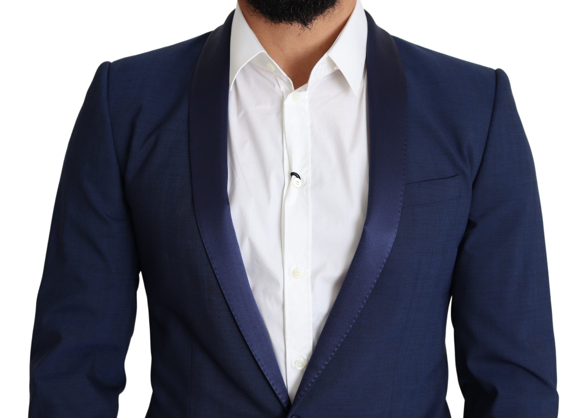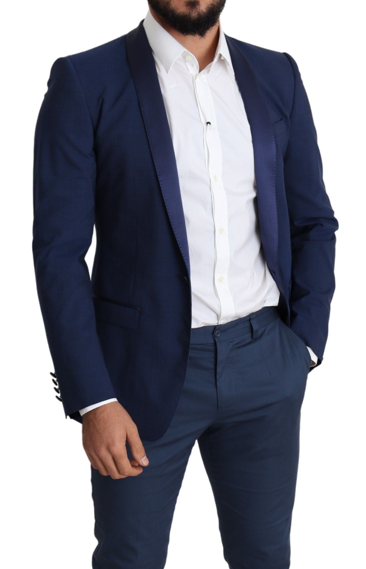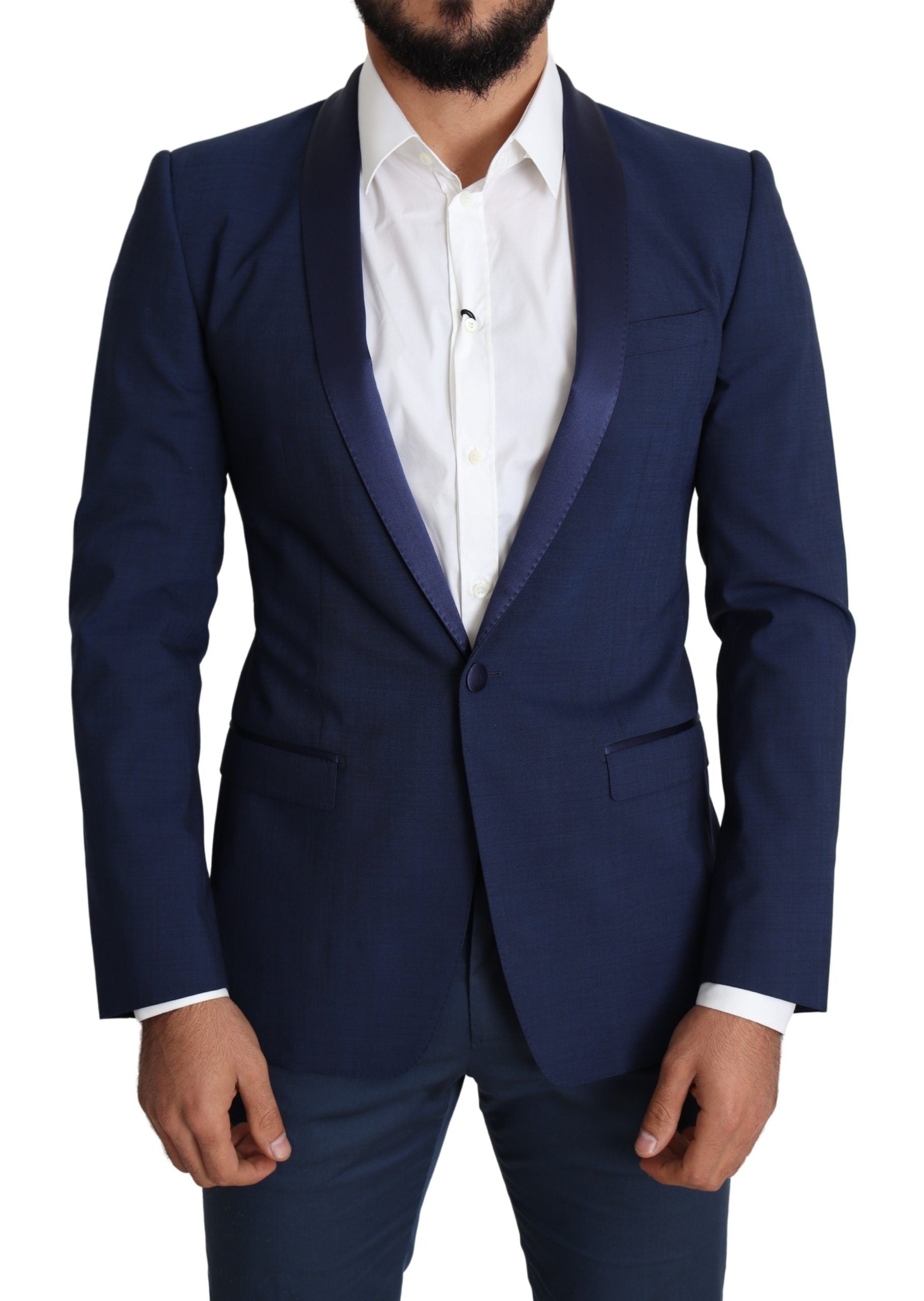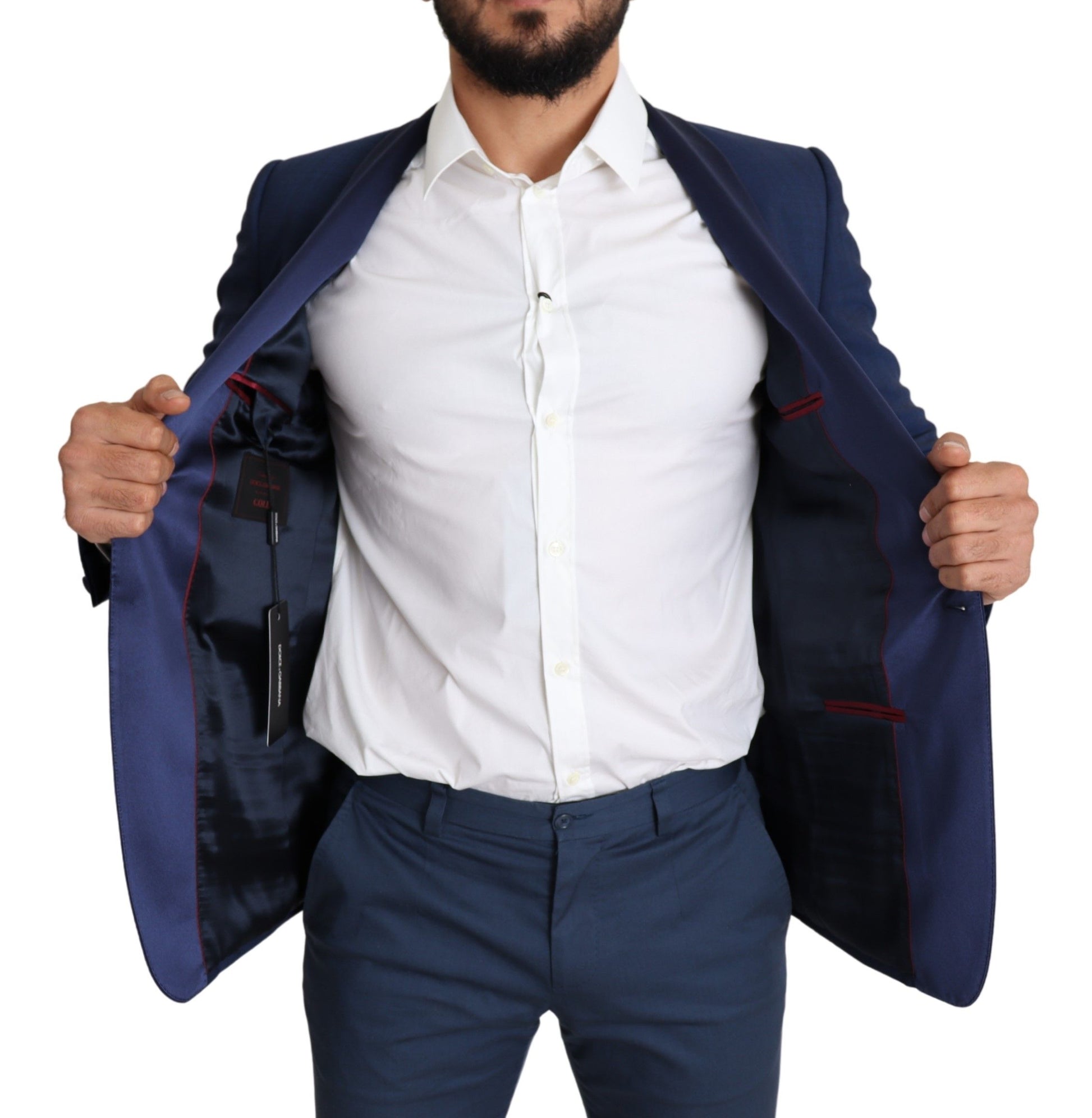 Elevate your wardrobe with this exquisite Dolce & Gabbana blazer jacket. Crafted from a luxurious blend of virgin wool, polyester, silk, and elastane, this blue slim-fit jacket features a sophisticated one-button single-breasted style. Impeccably designed with three outer pockets, three inner pockets, an open vent in the back, and detailed with the brand’s signature logo, it merges style with functionality, making it a perfect piece for formal occasions. Tailored in Italy, this jacket exemplifies exceptional craftsmanship and an exclusive appeal.