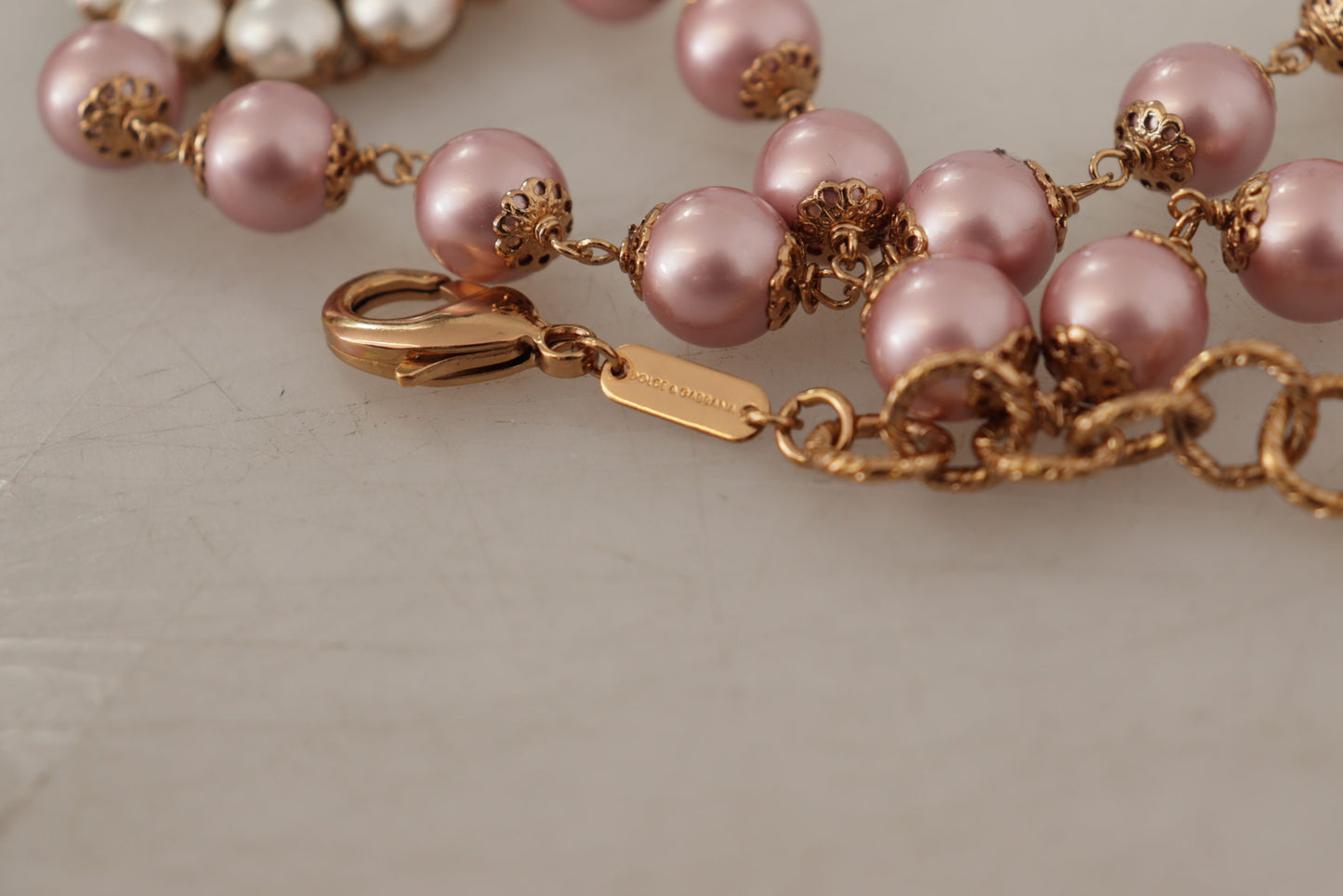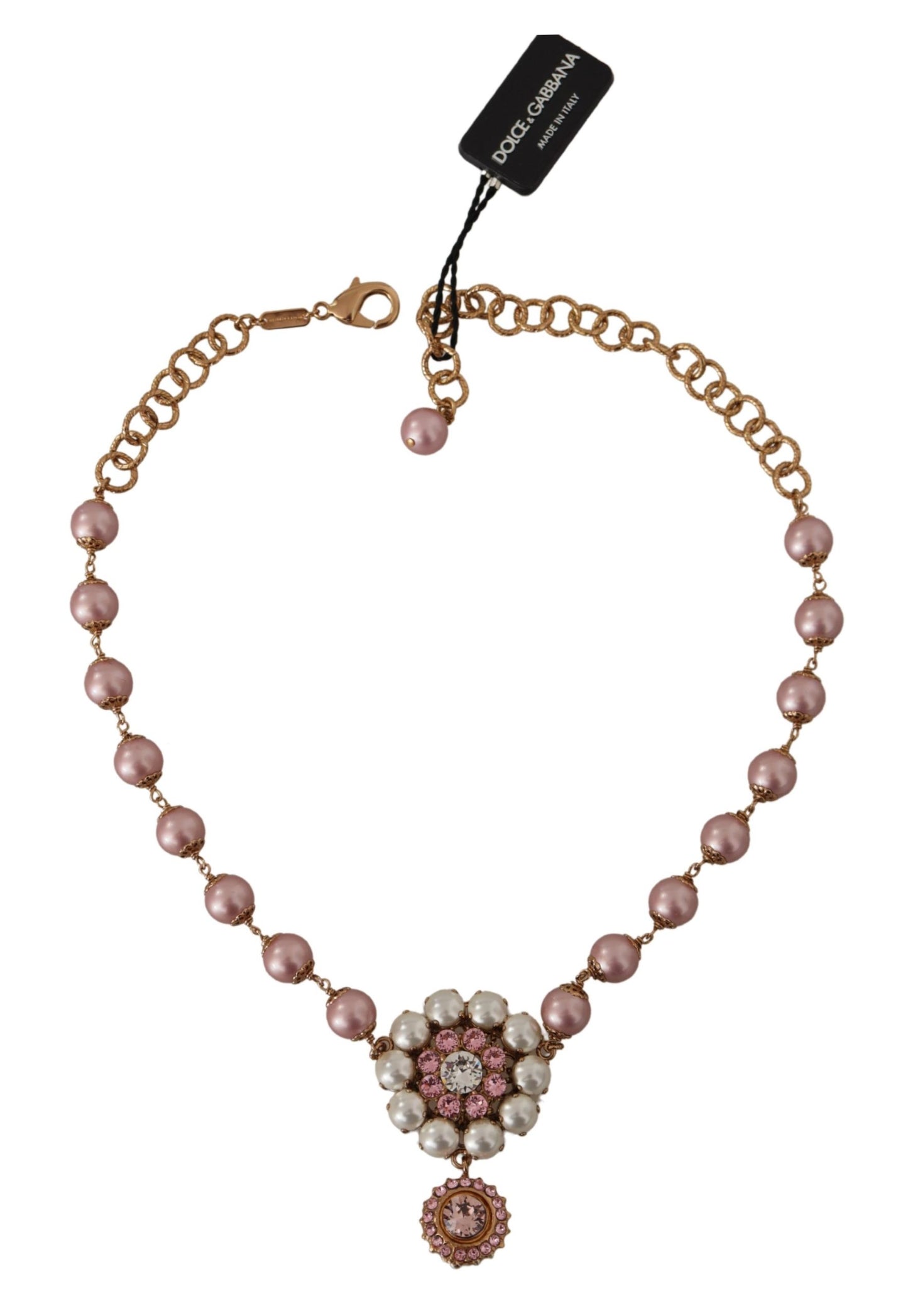 Embrace the epitome of luxury with this exquisite Dolce & Gabbana gold crystal necklace. Elegantly crafted with a blend of brass, glass, and plastic, this eye-catching piece boasts a stunning floral motif that’s sure to turn heads. Its captivating allure is enhanced by a mix of gold, pink, and white tones, complemented by a sophisticated lobster clasp closure. This statement charm necklace is an embodiment of Italian craftsmanship and design, perfect for adding a touch of opulence to any ensemble.