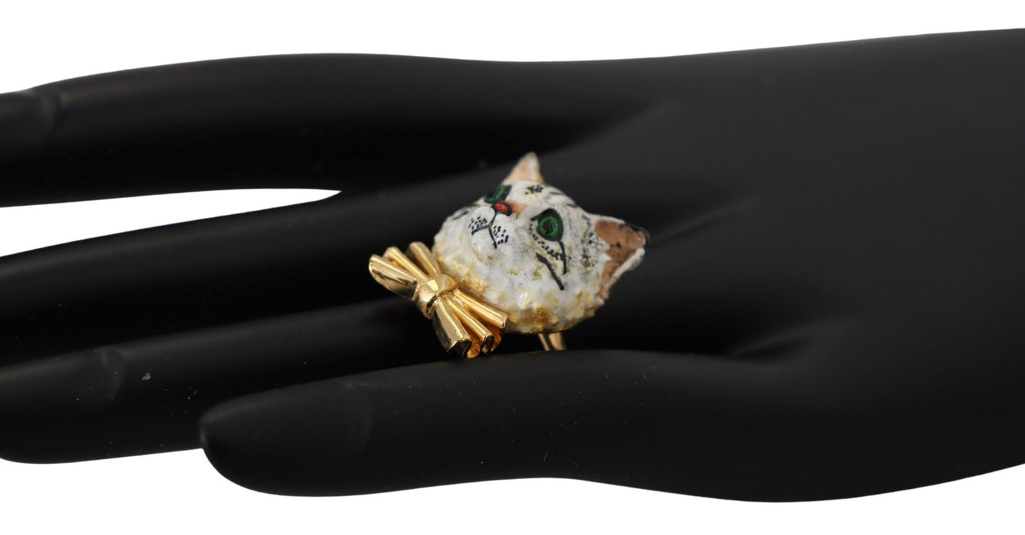 Adorn your fingers with the essence of elegance and whimsy with this exquisite Dolce & Gabbana cat head ring. Brand new with tags and hailing from the revered MainLine collection, this ring embodies a unique blend of sophistication and playfulness, perfect for the fashion-forward woman.