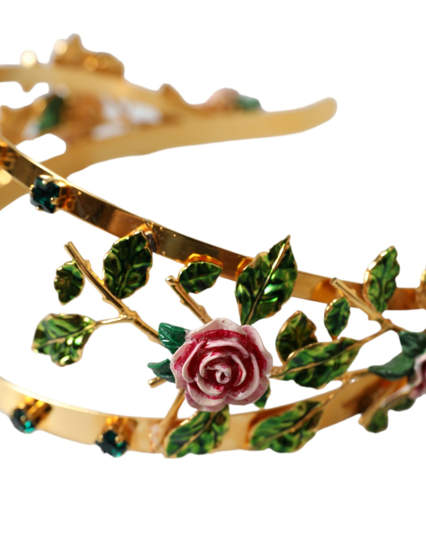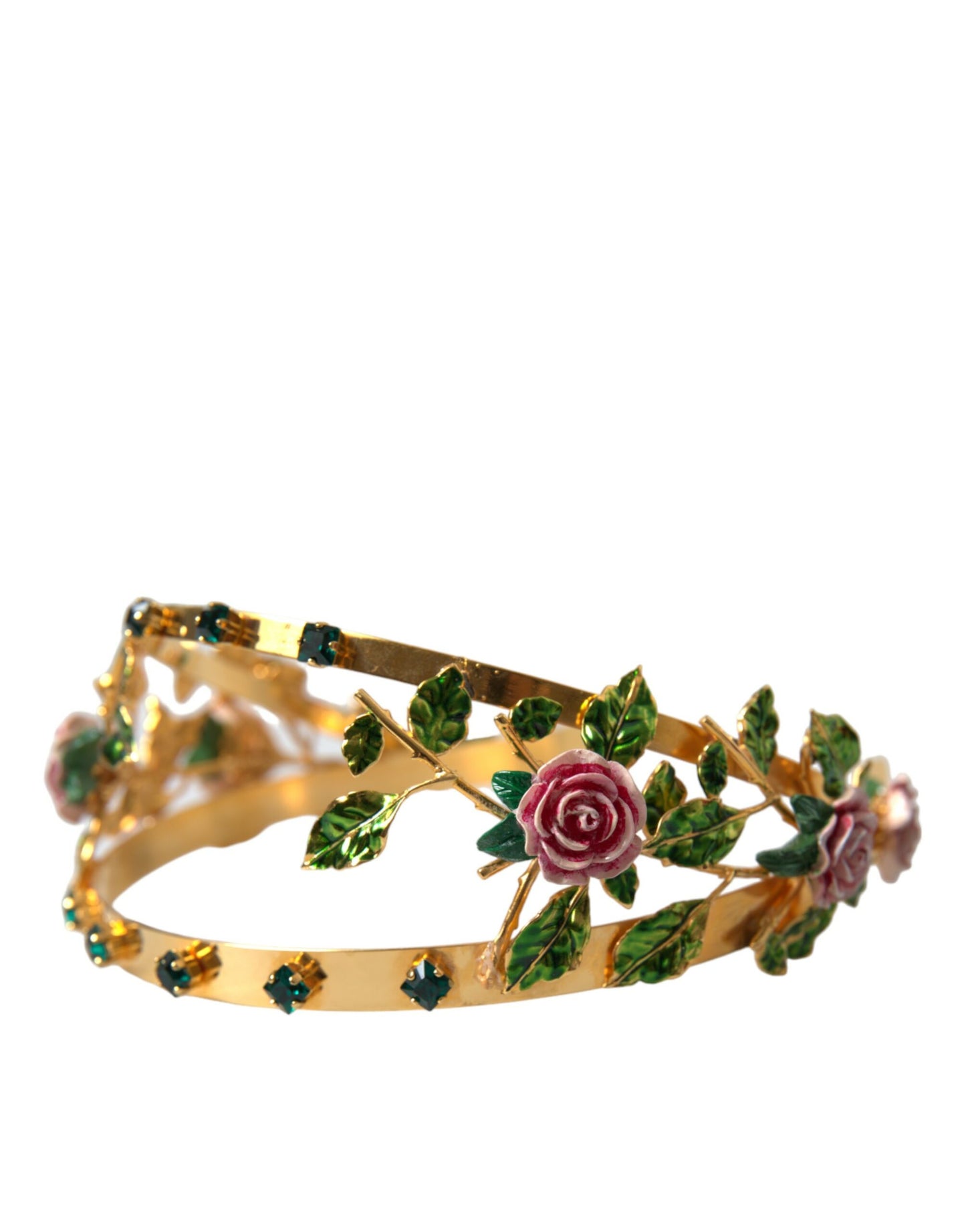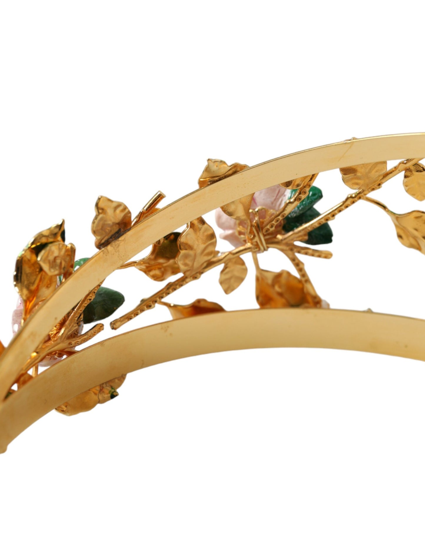 Absolutely stunning, 100% Authentic, brand new with tags Dolce & Gabbana gold tone brass roses crystal embellished diadem.