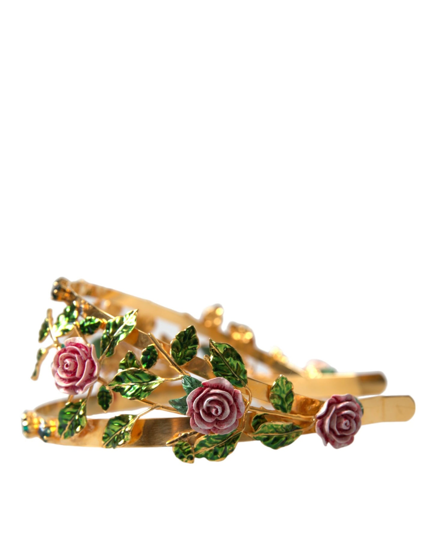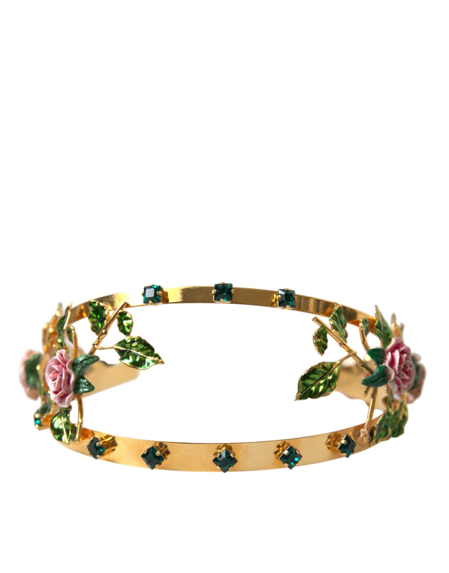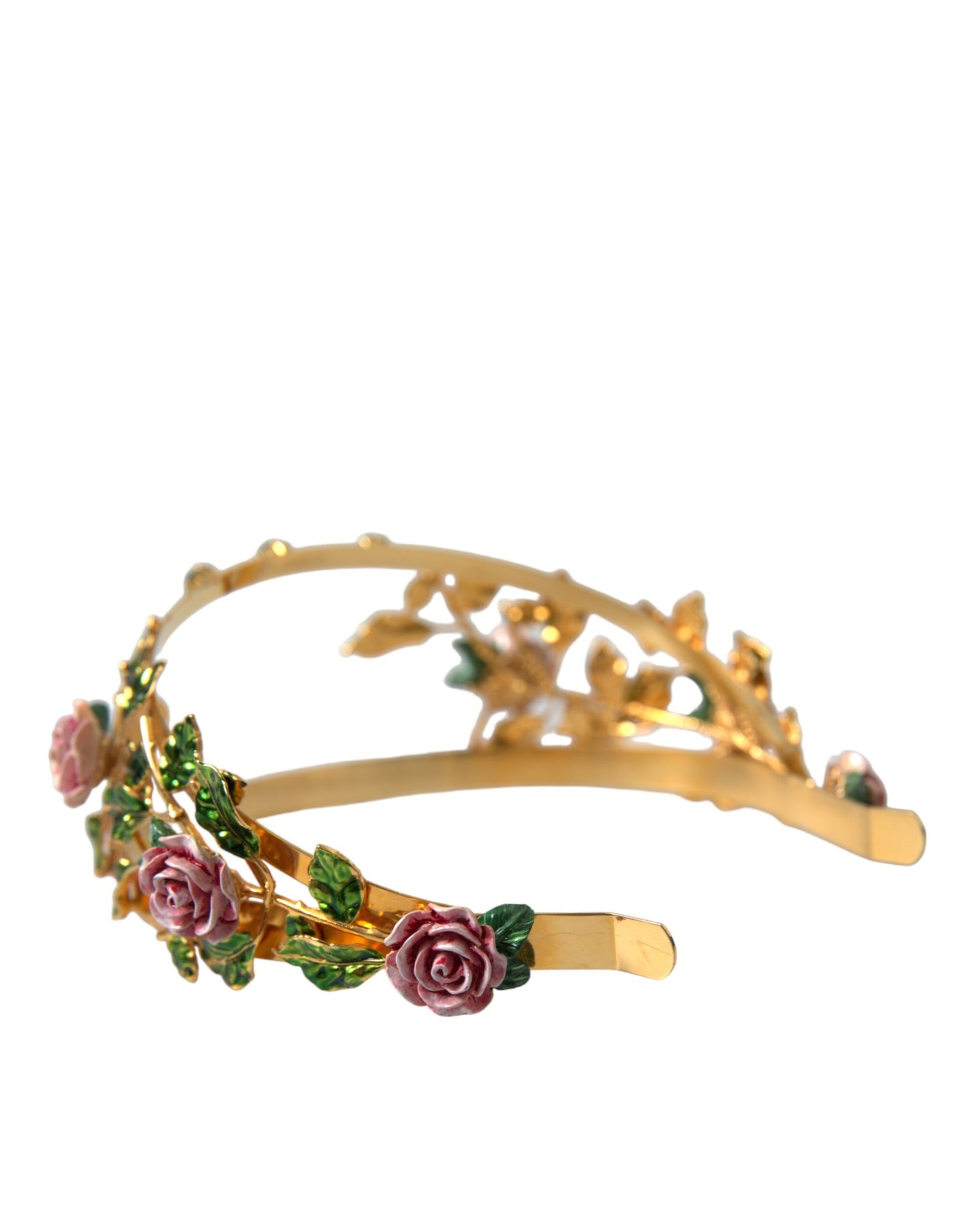 Absolutely stunning, 100% Authentic, brand new with tags Dolce & Gabbana gold tone brass roses crystal embellished diadem.