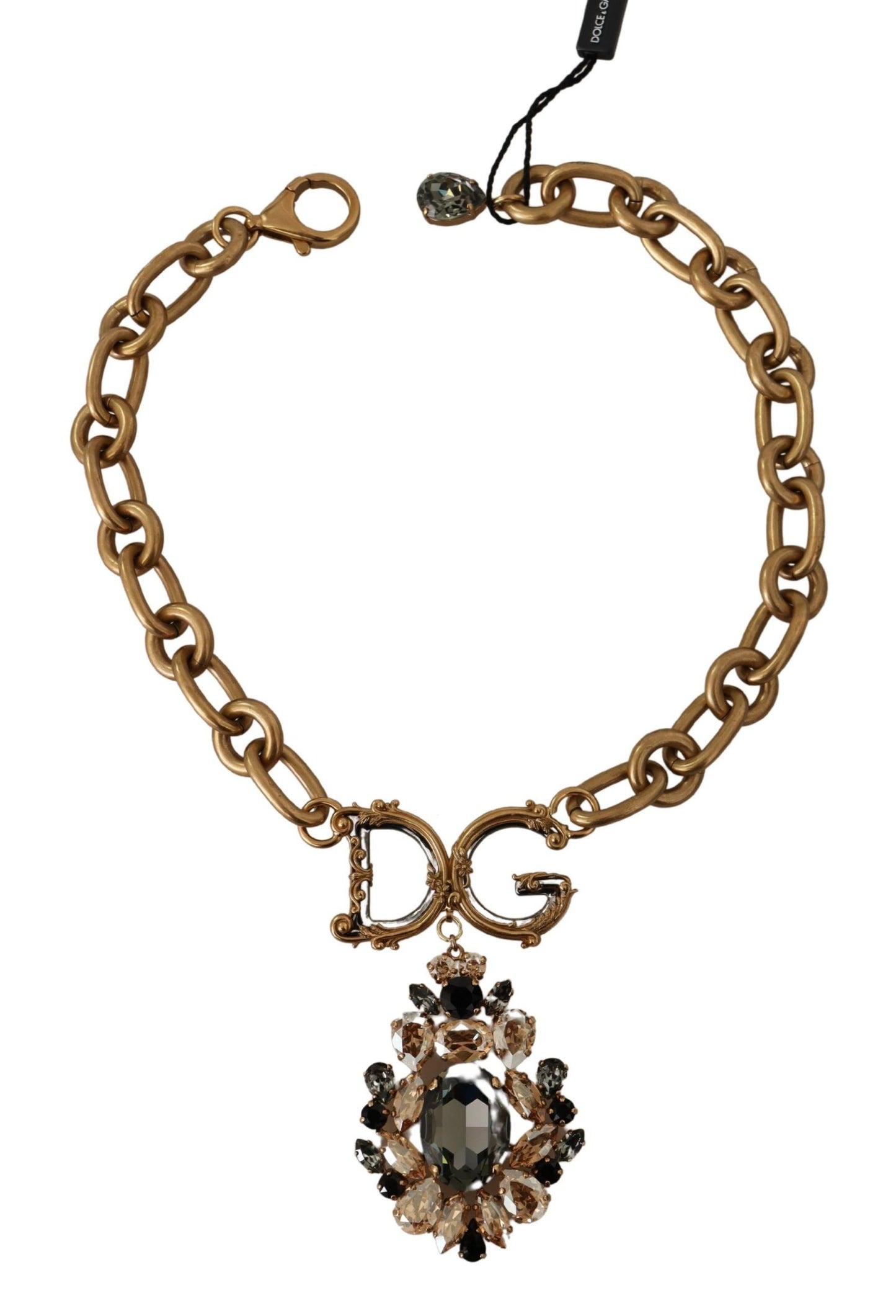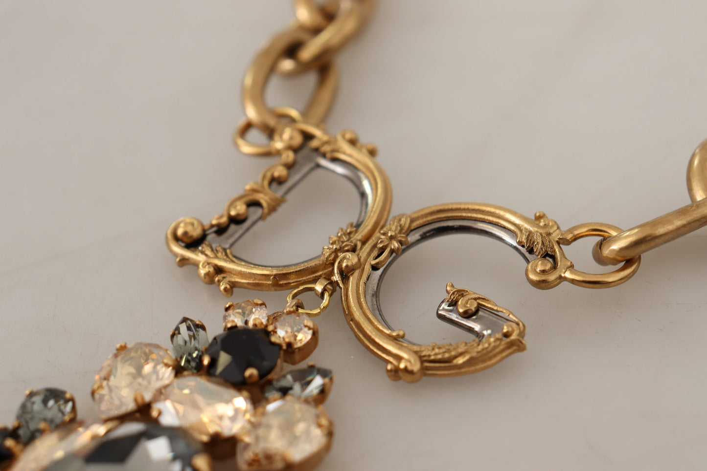 Step into a world of elegance with this exquisite Dolce & Gabbana statement necklace. A piece that exudes sophistication, it features a beautiful SICILY motif, complemented by sparkling champagne and gray crystals that catch the light with every movement. Crafted with precision in Italy, this necklace is a blend of 70% brass and 30% glass, ensuring durability and a luxe finish. The lobster clasp closure provides a secure and comfortable fit. Whether you’re attending a gala or accessorizing for an upscale dinner, this necklace adds a touch of glamour to any ensemble.