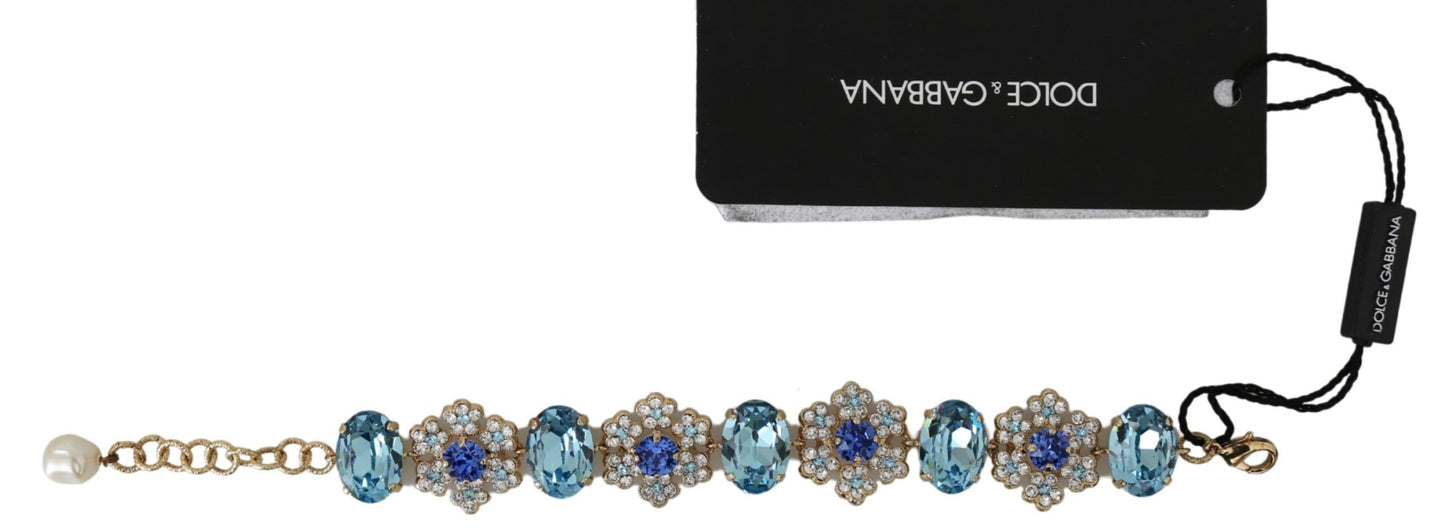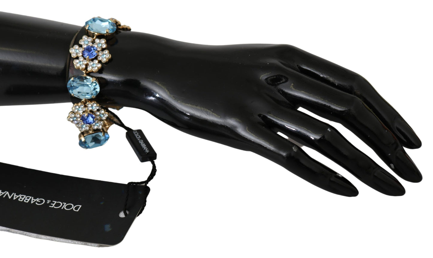 Reflect your sophisticated style with this exquisite Dolce & Gabbana Chain Bracelet. It is a perfect blend of elegance and charm, adorned with striking blue crystals and delicate charms that add a dash of lavishness to your ensemble. Ready to wear with any outfit, it signifies luxury and class, making it an ideal accessory for any occasion.