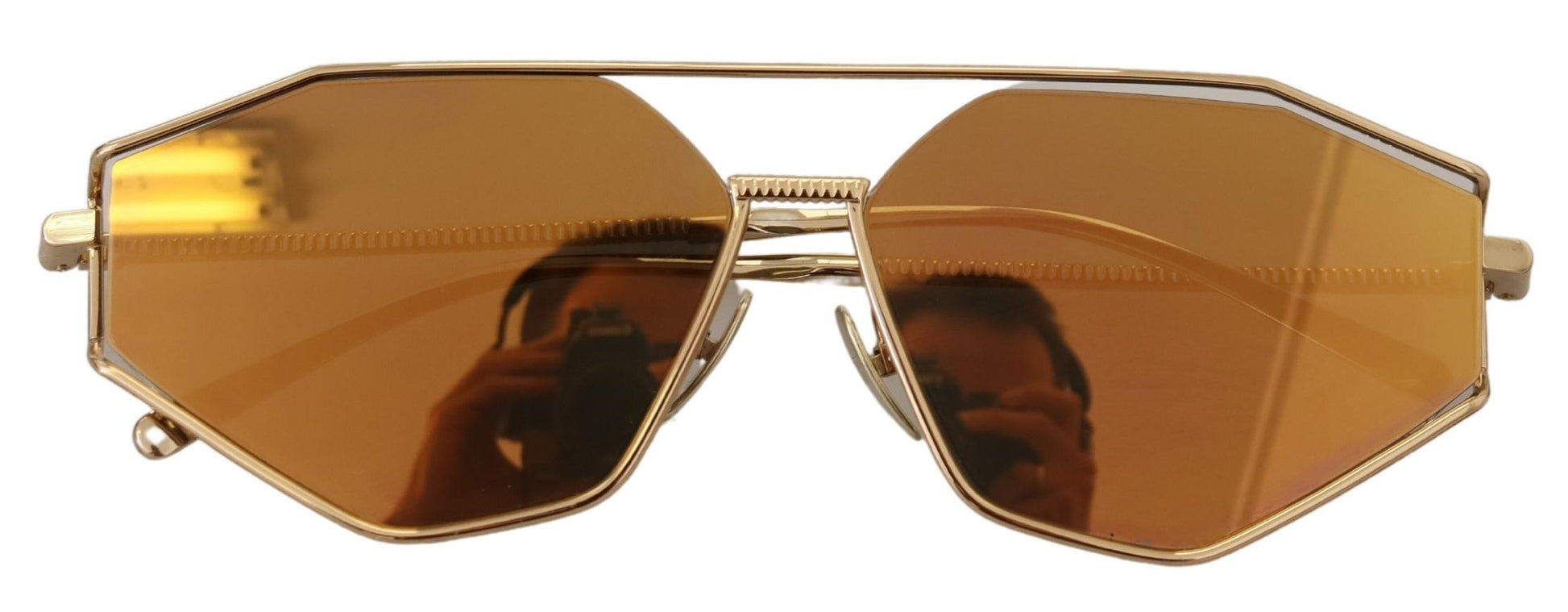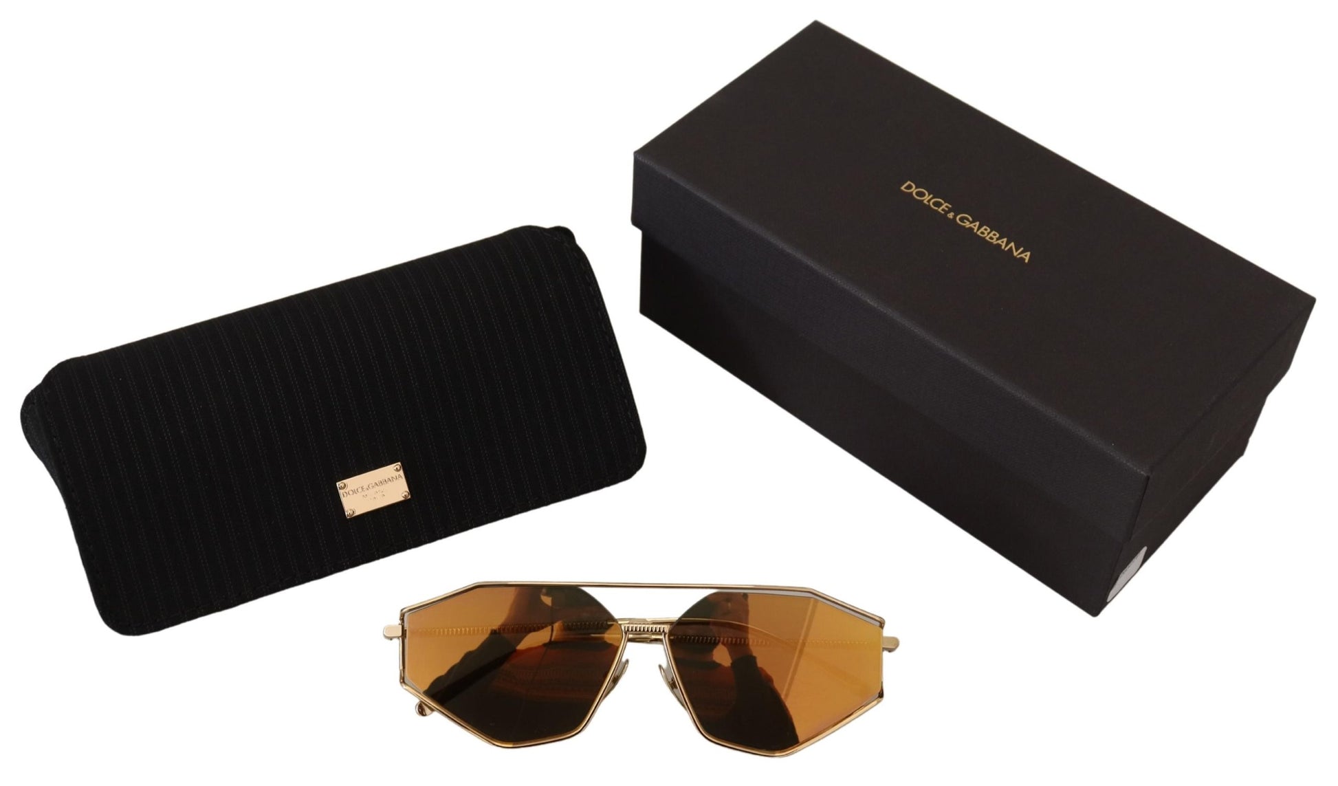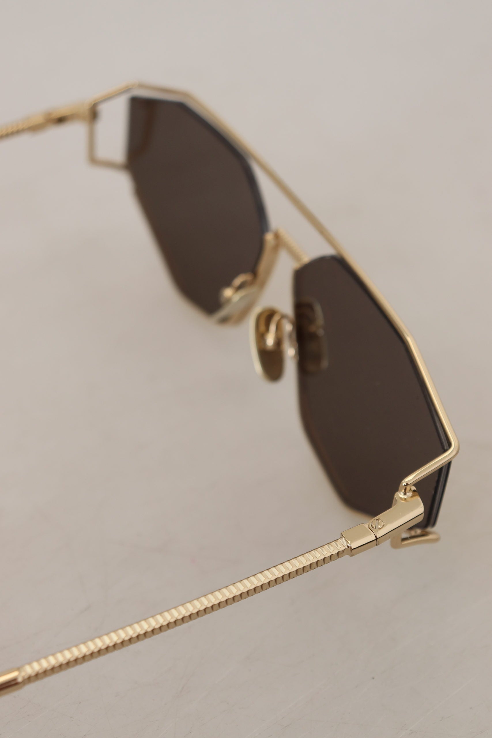 Step out in style with these exquisite sunglasses by Dolce & Gabbana. Flaunting a sophisticated gold metal frame with chic brown lenses that offer 100% UV protection, this eyewear is not just about looks but also about shielding your eyes with utmost care. Perfectly crafted in Italy, the design balances elegance and functionality, making it an ideal accessory for the fashion-conscious.