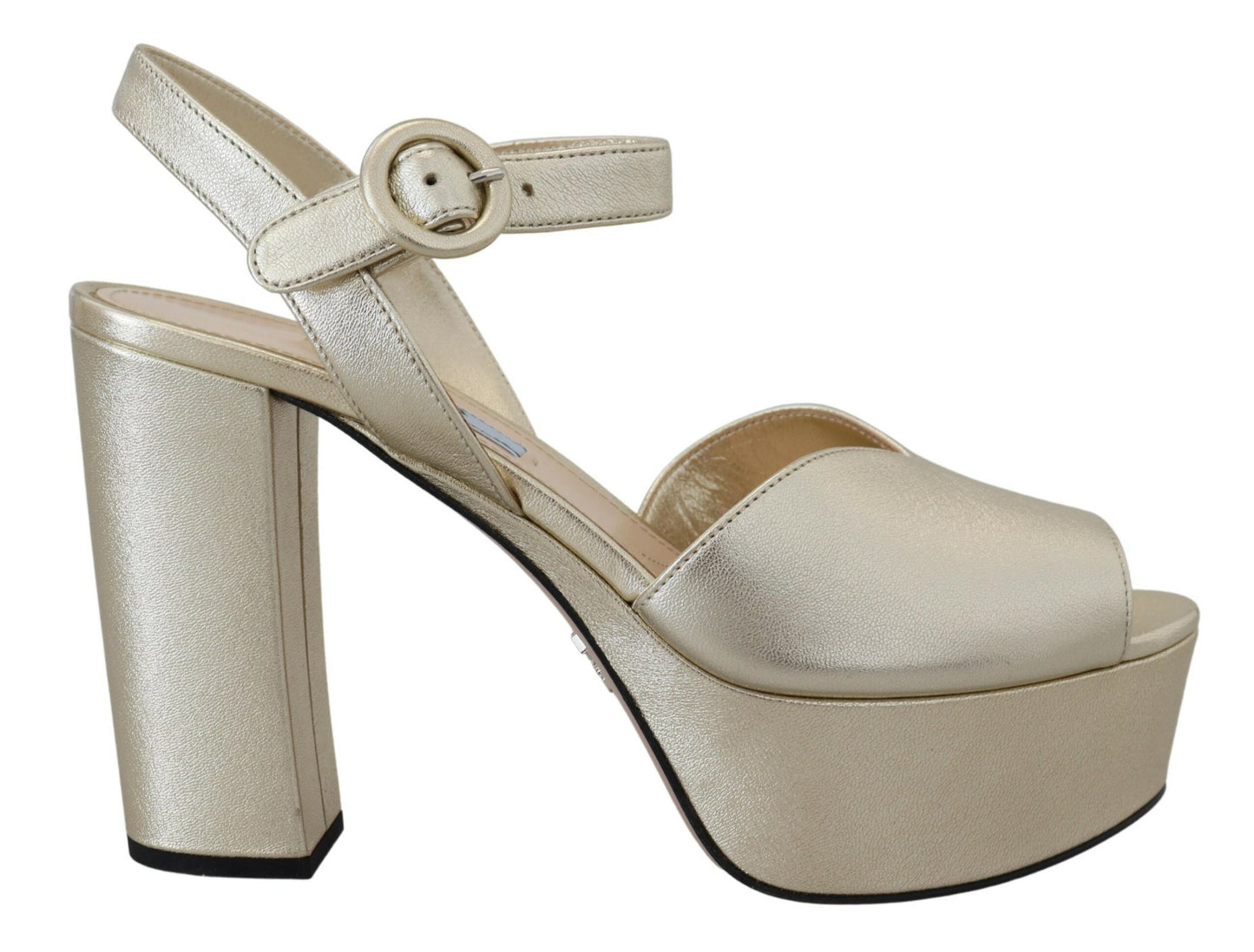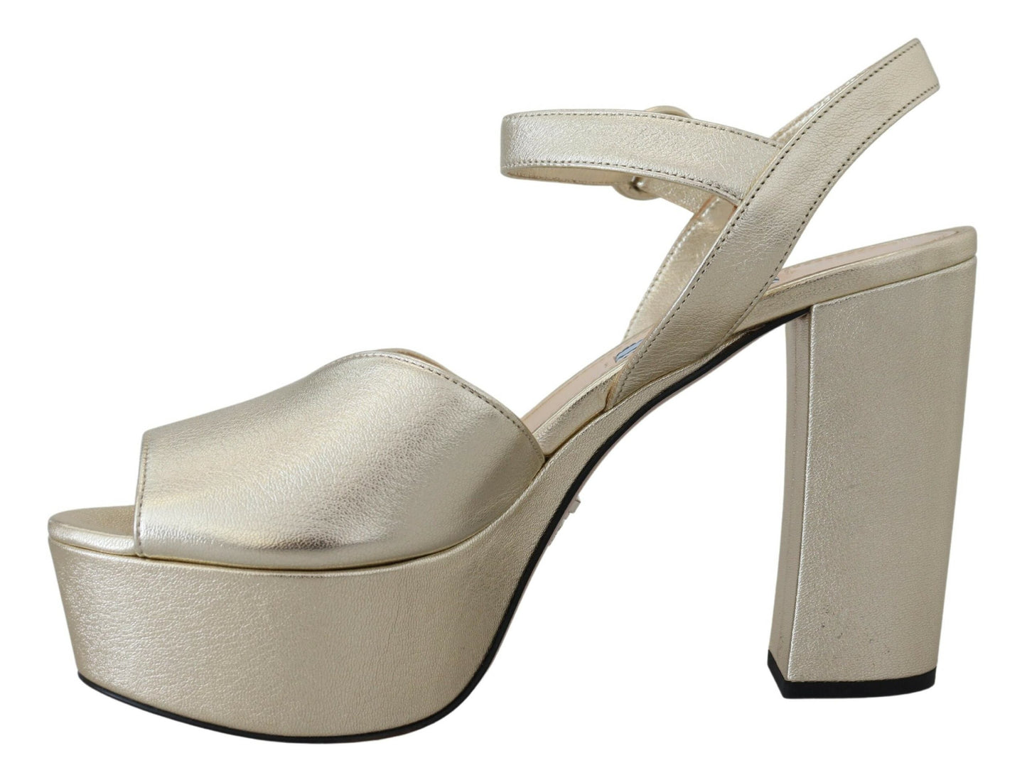 Introducing the epitome of sophistication and timeless style with these Gorgeous, brand new block heel platform sandals. Crafted from 100% Leather, they exude luxury with every step. The eye-catching Gold color adds a touch of glamour, perfect for enhancing your ensemble. Featuring the iconic logo that symbolizes high craftsmanship. Made in Italy, these heels are a testament to fashion-forward elegance and exclusivity.