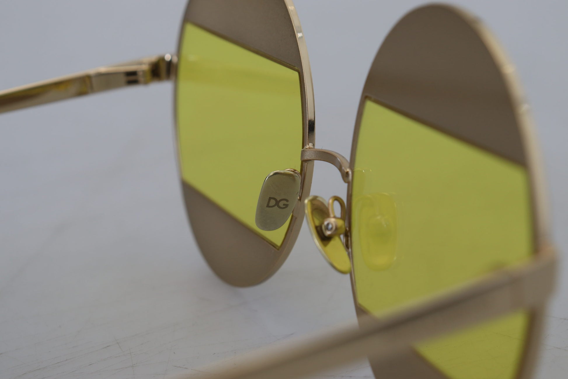 Indulge in the epitome of glamour with these stunning, 100% Authentic Dolce & Gabbana oval-shaped sunglasses, intricately adorned with colored crystals. The elegant gold finish accentuates your style, while the yellow lenses provide essential 100% UV protection. A luxurious accessory made in Italy to elevate your everyday ensemble.