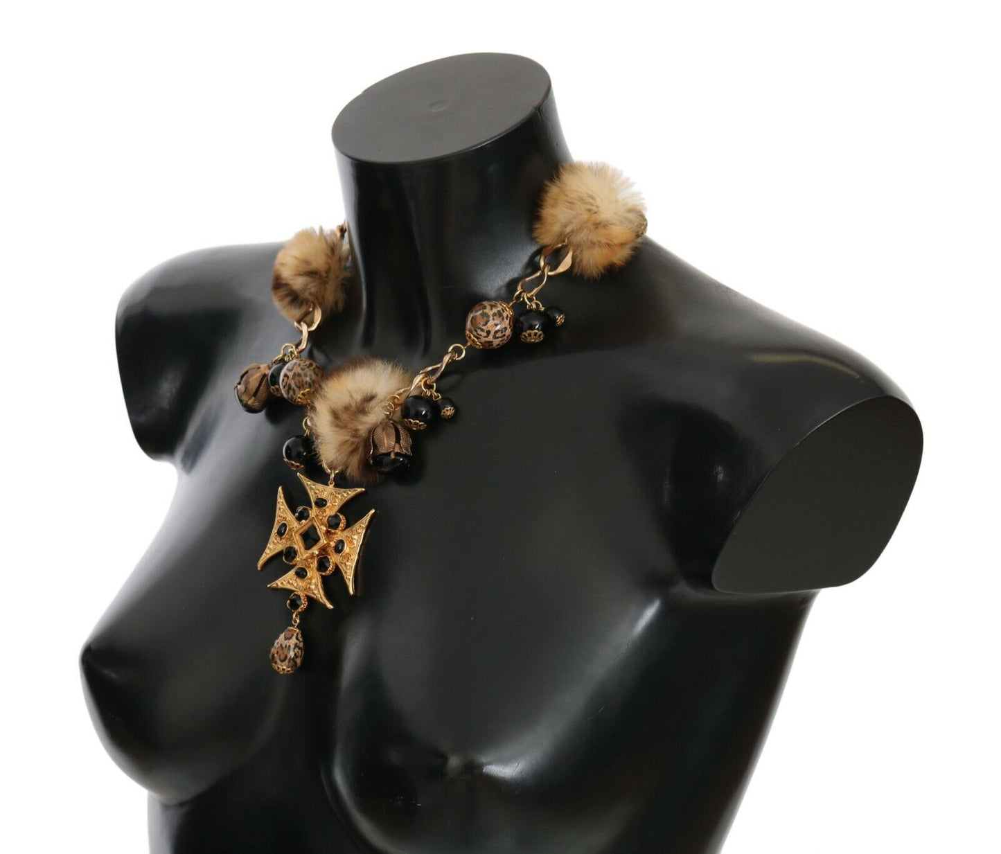 Indulge in the exquisite elegance of Dolce & Gabbana with this stunning gold-plated, brass crystal necklace. This luxurious piece features striking black crystals and a statement charm design, accented with soft Lapin fur, encapsulating opulence. Perfectly secured with a lobster clasp closure and crafted in Italy, it’s a signature blend of traditional luxury and contemporary style, detailed with the iconic logo. An exclusive and rare find, it promises to elevate any ensemble.