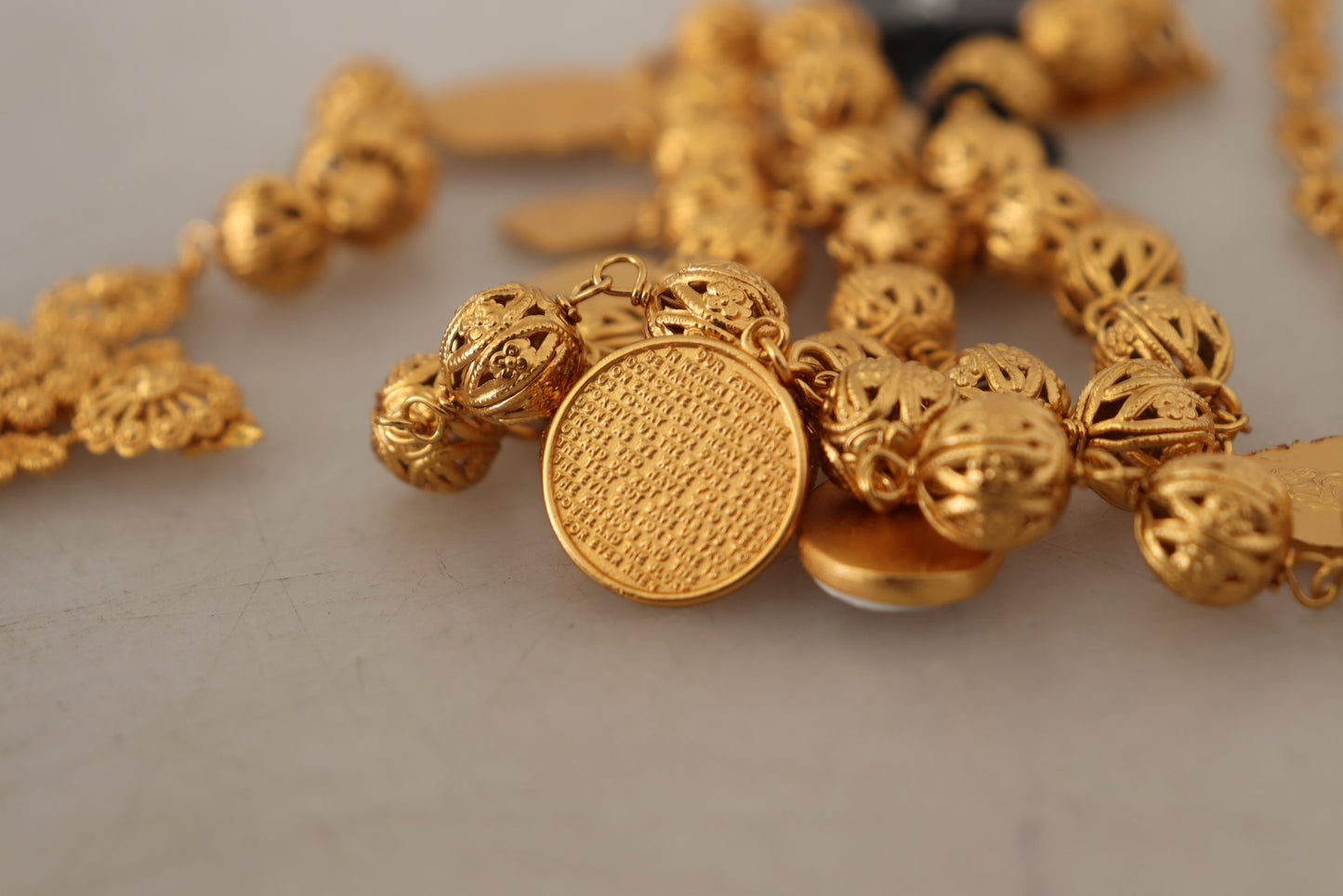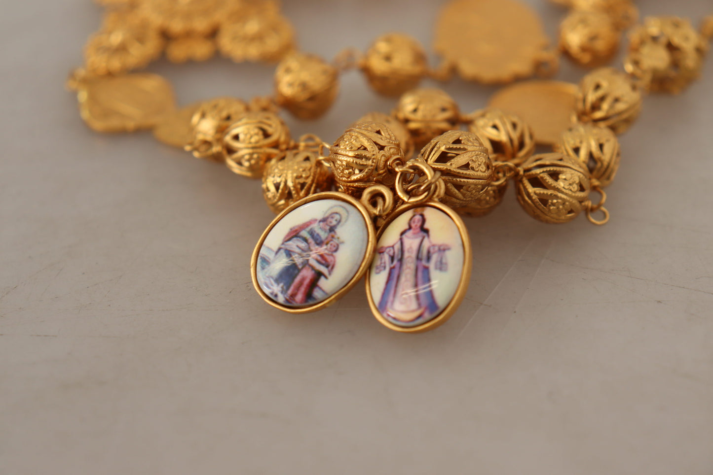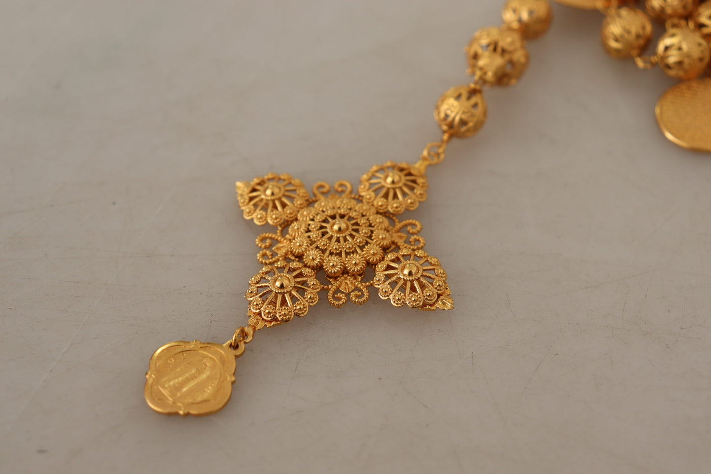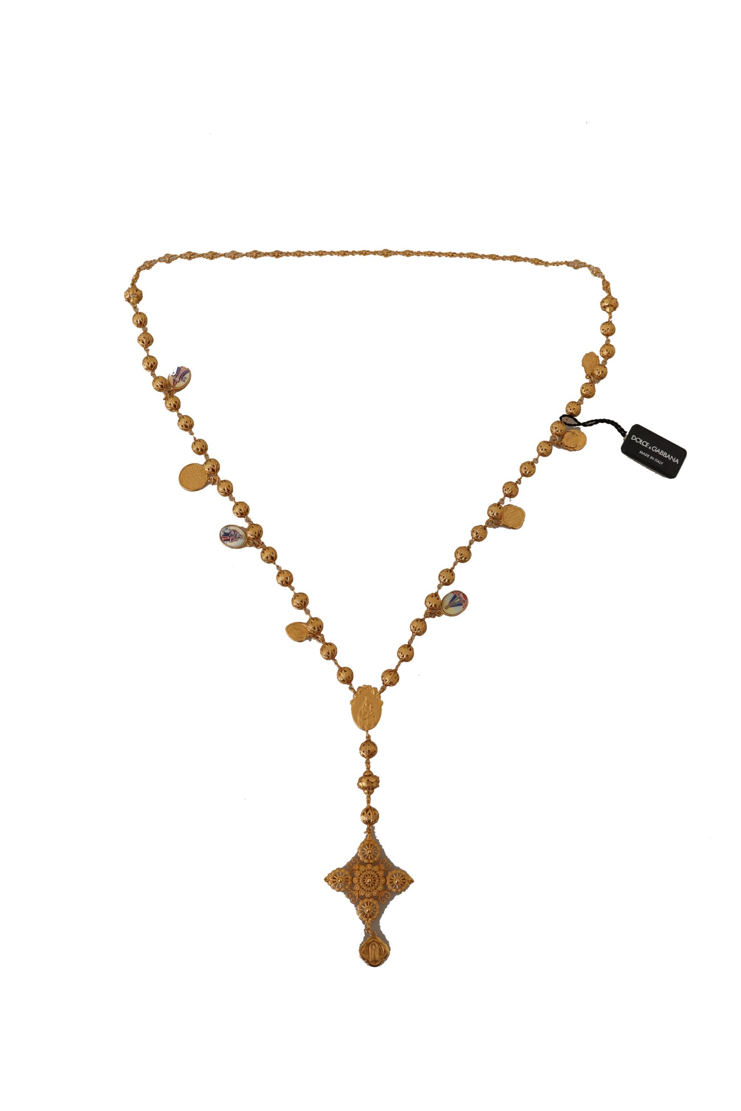 Discover the epitome of luxury and grace with the Dolce & Gabbana gold tone brass charm necklace. This exquisite piece is brand new with tags, ensuring 100% authenticity and pristine condition. It features a captivating cross pendant that dangles regally from a sophisticated chain, manifesting an aura of elegance and faith. Adorned with the iconic logo, this charming necklace was crafted with precision and passion in Italy and is a testament to the brand’s unwavering commitment to luxury. A versatile addition to your jewelry collection, it can elevate any ensemble with its radiant gold color and divine presence.