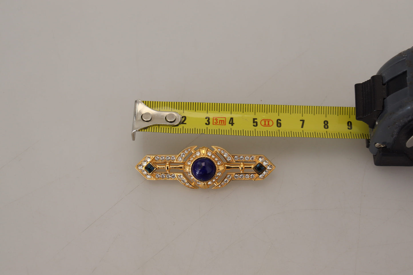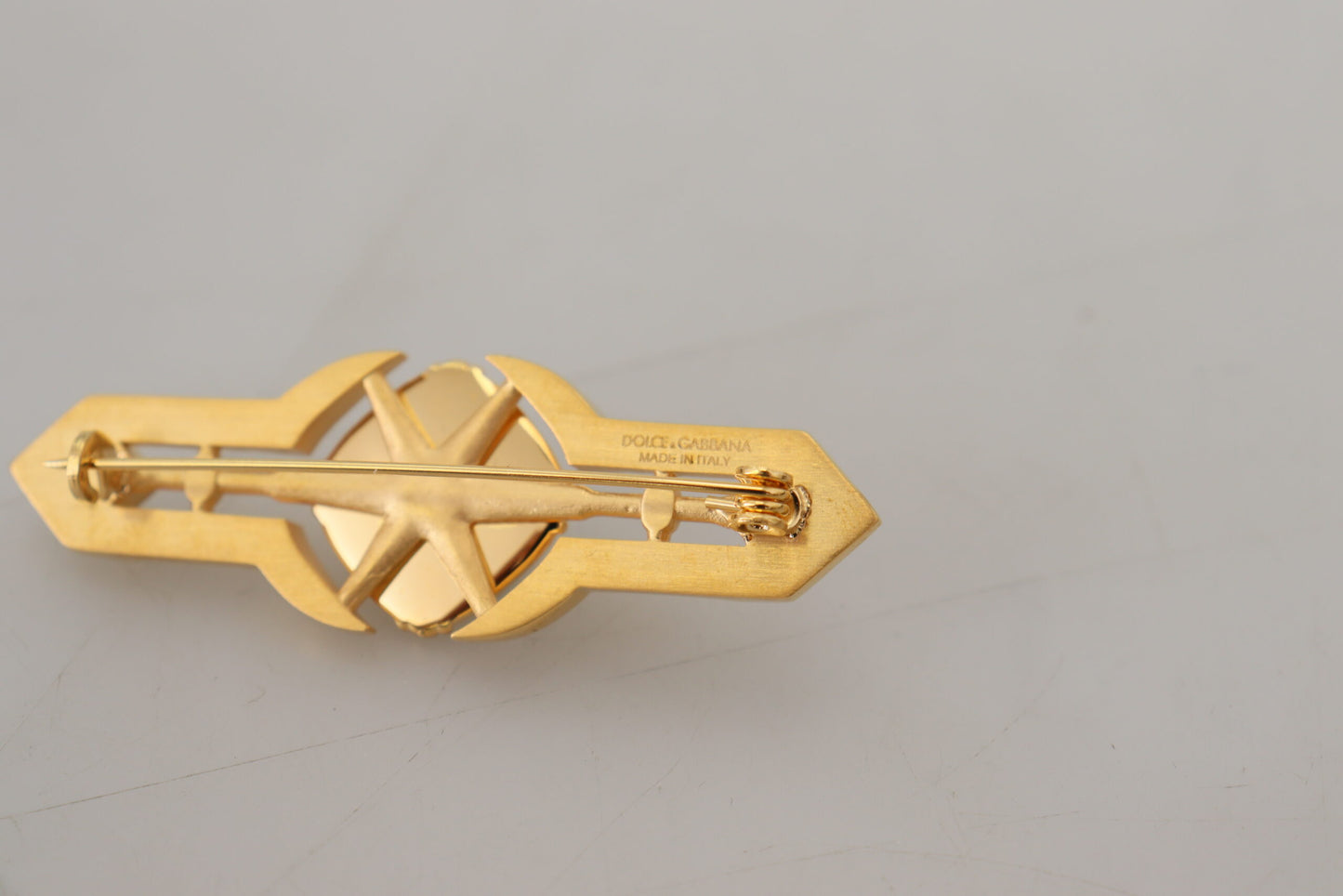 Indulge in the opulence of Dolce & Gabbana with this stunning gold-plated brass brooch. Embellished with sparkling glass and natural stone, it’s the perfect accessory to elevate any outfit. Made in Italy, this gorgeous brooch radiates luxury and style, and comes with tags and original box, making it an ideal gift or collectible piece.