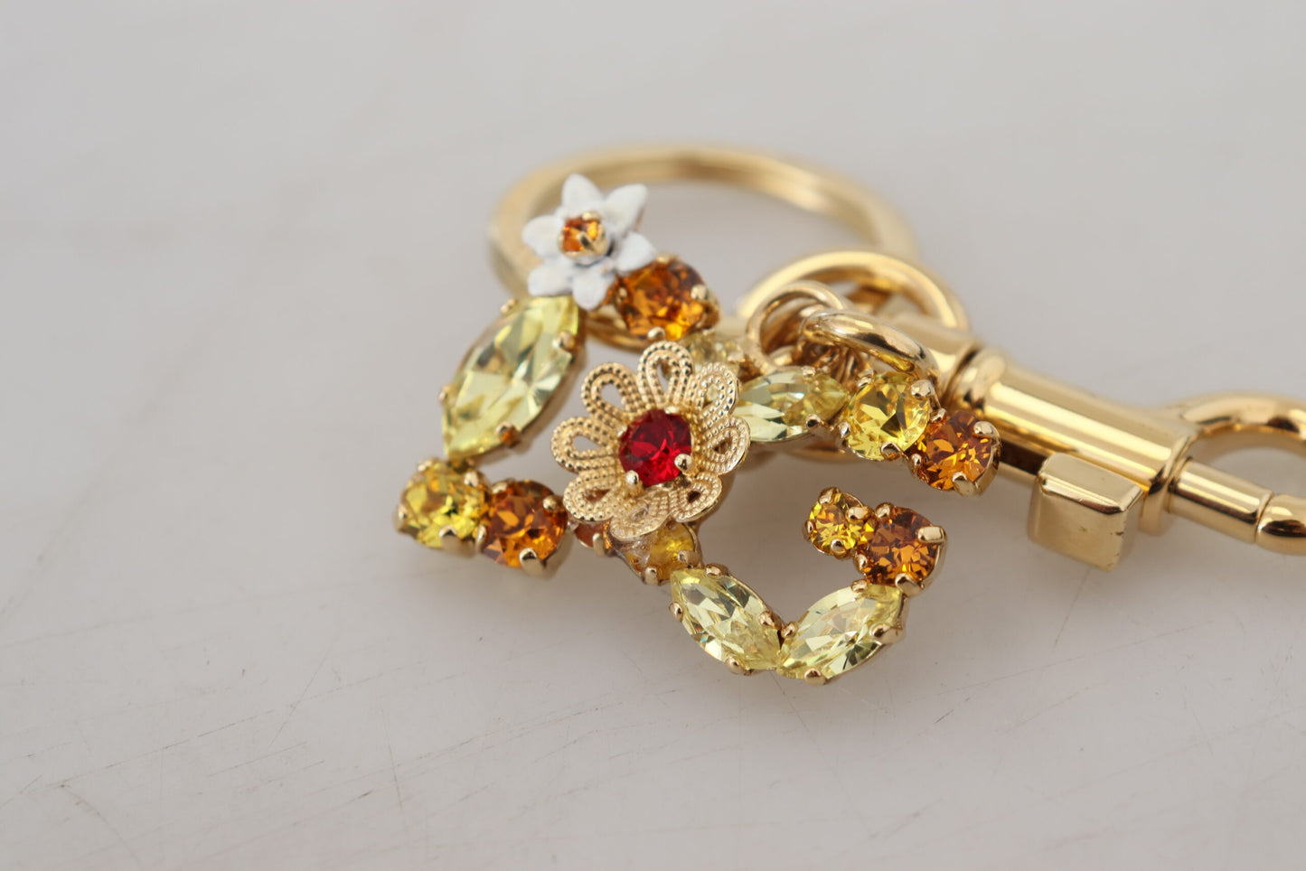 Indulge in the elegance of Dolce & Gabbana with this stunning keychain that blends functionality with high fashion. Boasting a luxurious gold hue and sparkling with crystals, this accessory brings a touch of Italian finesse to your everyday essentials.