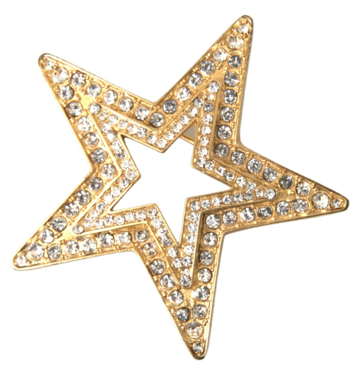Enhance your attire with this stunning gold plated star pin from the luxurious fashion house Dolce & Gabbana. This exquisite piece is brand new with tags and comes in its original box, making it the perfect upscale accessory or a thoughtful gift. Adorned with sparkling crystals, this pin adds an immediate touch of glamor to any outfit.