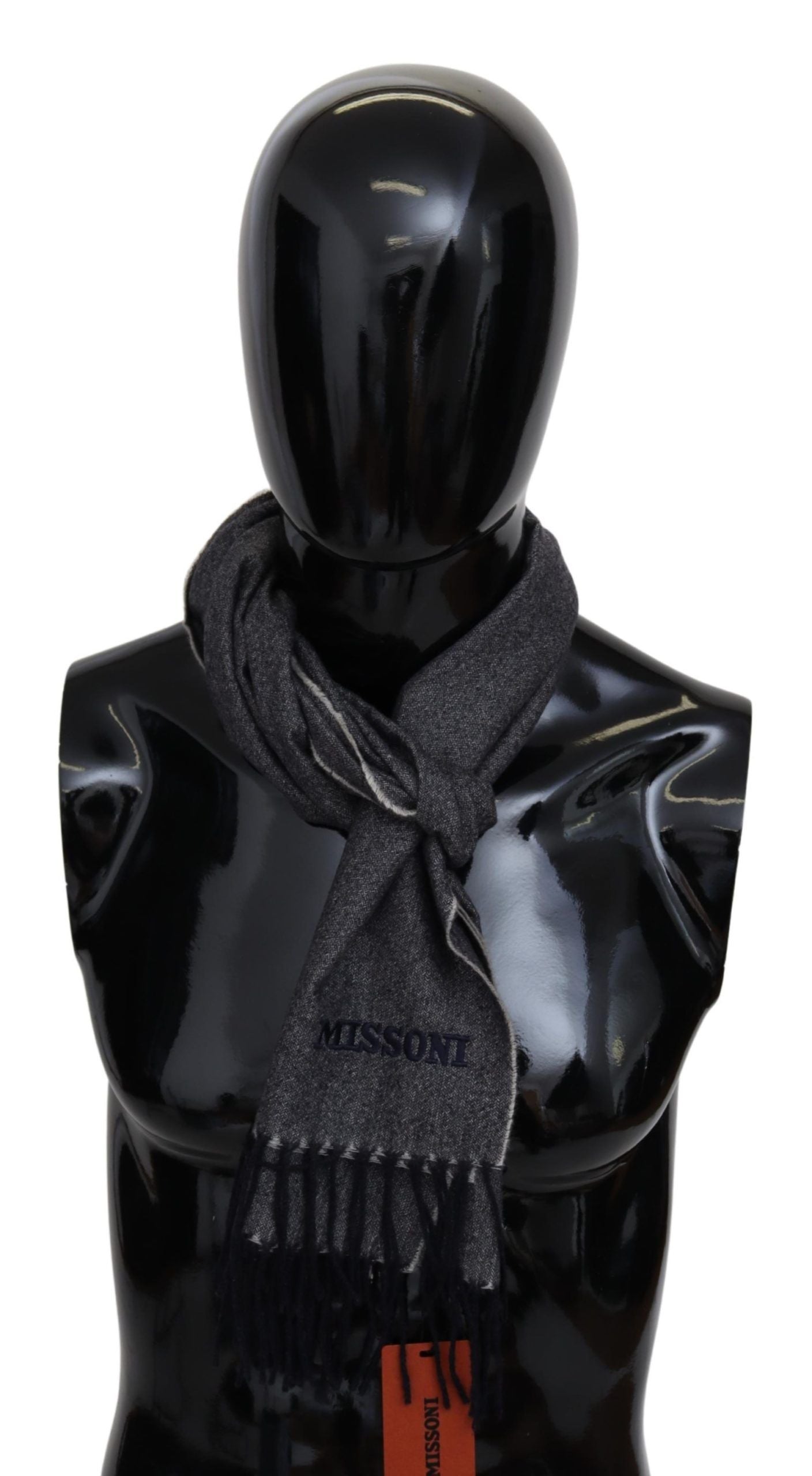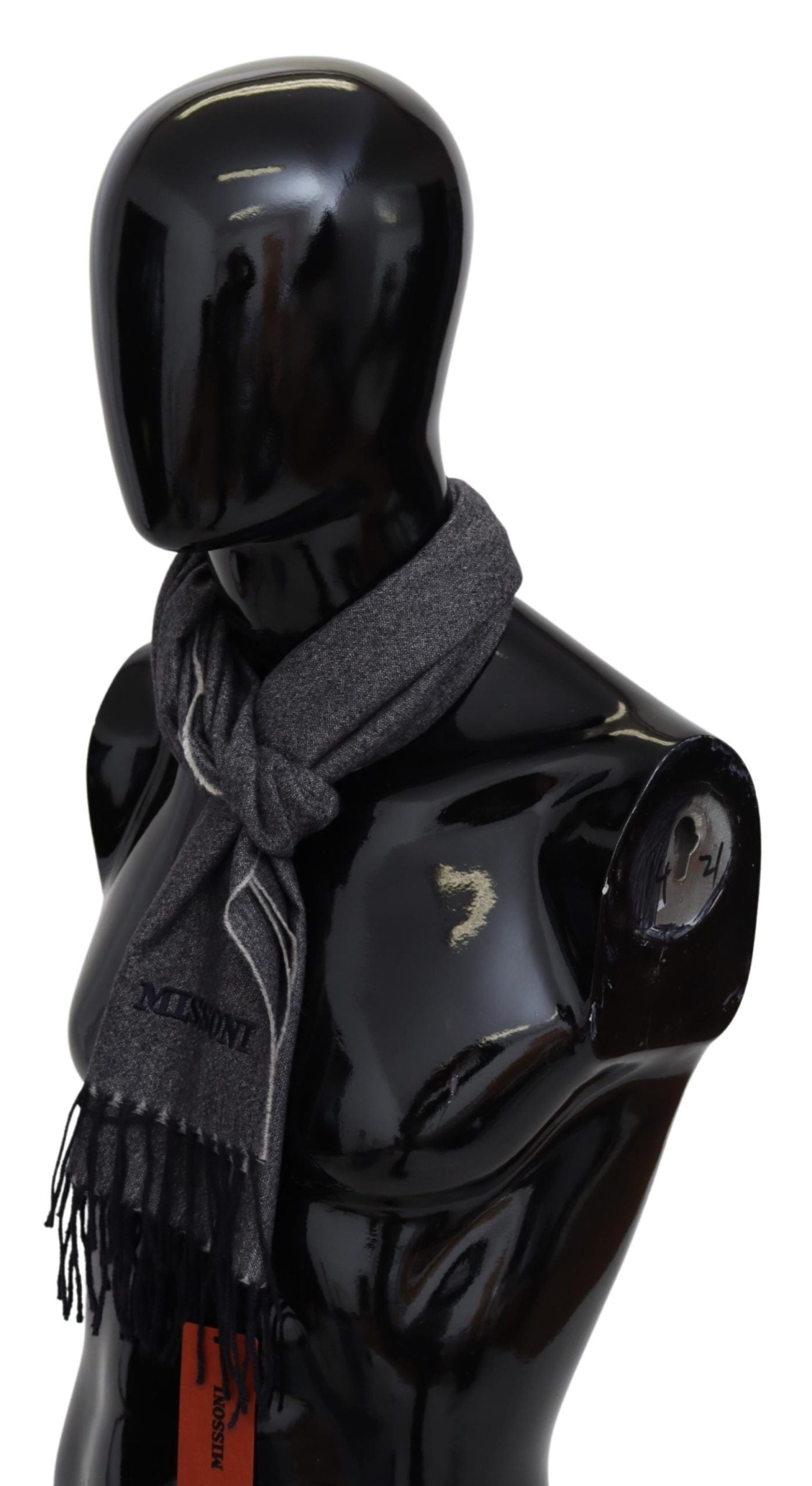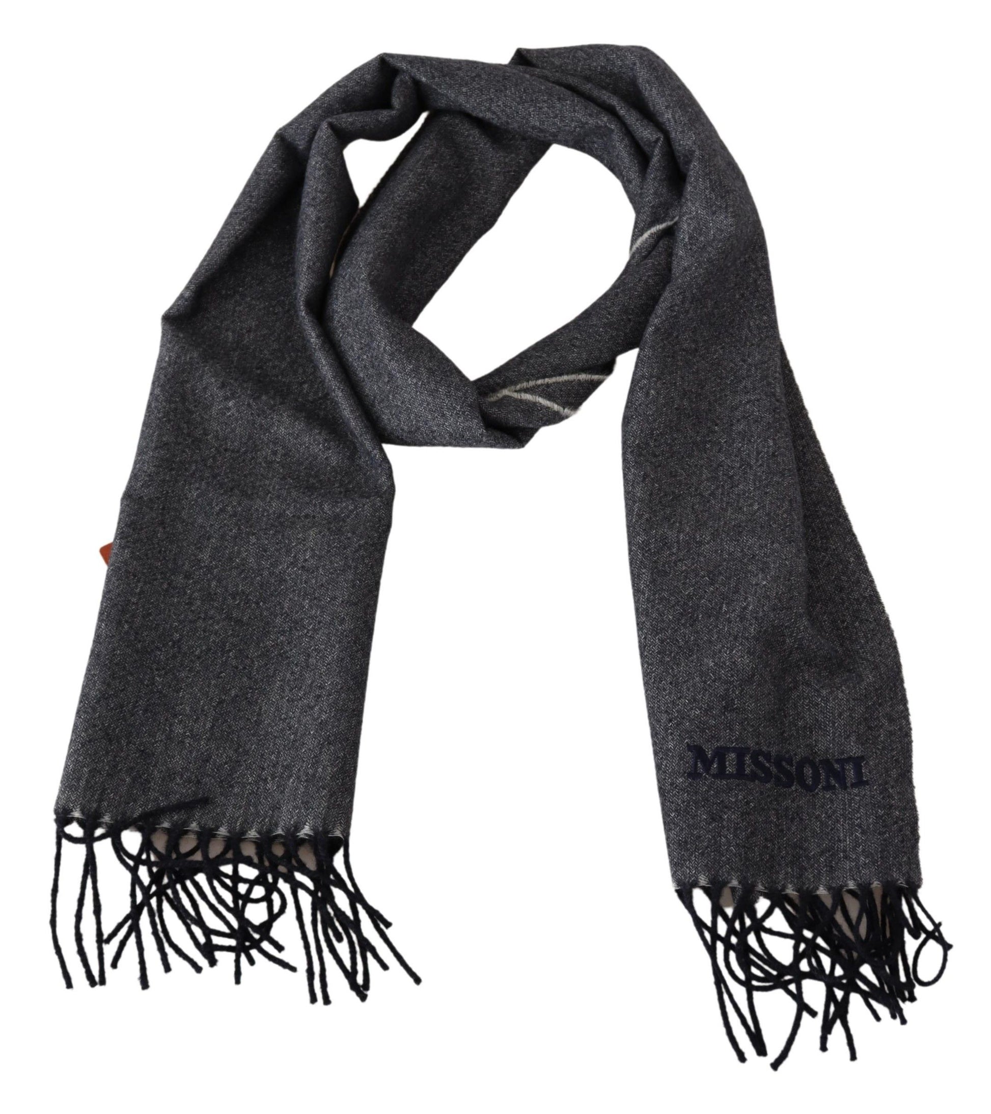 Wrap yourself in the epitome of luxury with this stunning Missoni cashmere scarf. A must-have accessory for both men and women, this scarf boasts an elegant gray hue, softened by the plush feel of 100% cashmere. Embellished with the iconic logo, it’s a statement of sophistication and style. Perfect for adding a touch of class to any outfit, its generous dimensions ensure warmth and versatility.