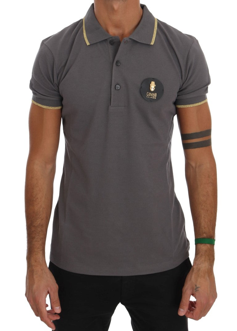 Experience the perfect blend of luxury and comfort with this Roberto Cavalli CLASS polo shirt. Crafted from 100% authentic soft cotton, this brand new polo with tags ensures quality and style. The classic grey hue makes it incredibly versatile for any occasion, while the short sleeve design and three-button collar closure add a touch of sophistication. Completed with the iconic logo detailing, it’s an essential addition to your wardrobe.