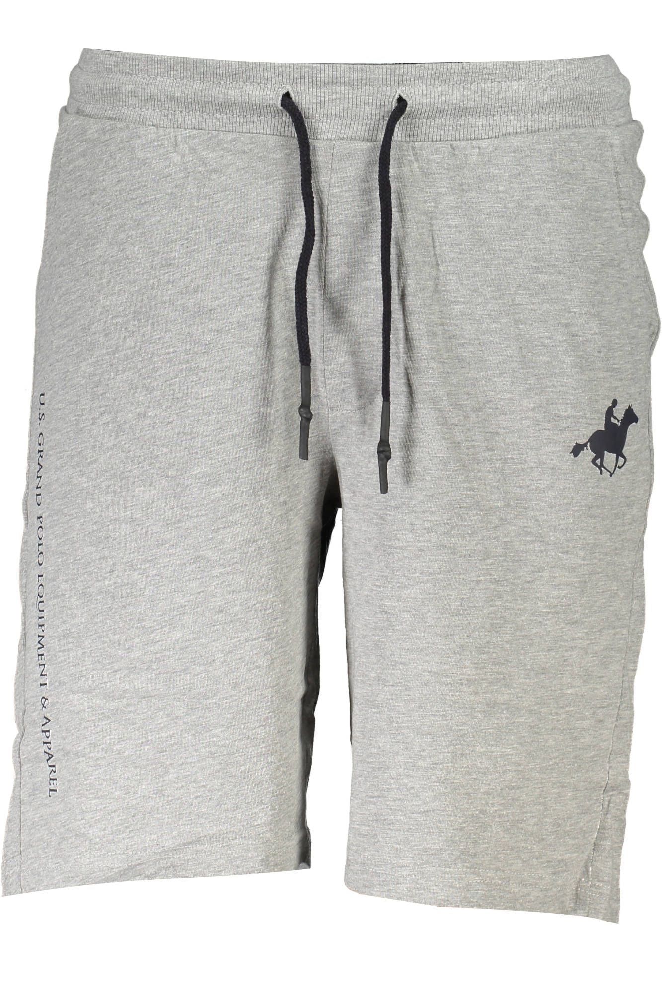 Step up your casual wear with these stylish and comfortable gray cotton shorts from U.S. Grand Polo. Ideal for an active day out or a relaxed afternoon, these shorts come with a convenient elastic waistband, adjustable with laces to ensure the perfect fit. Equipped with three practical pockets and adorned with a sharp print and the iconic logo, these shorts blend functionality with fashion.