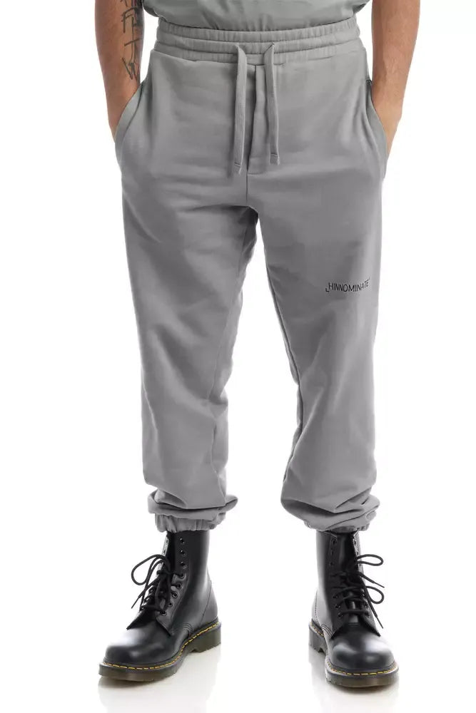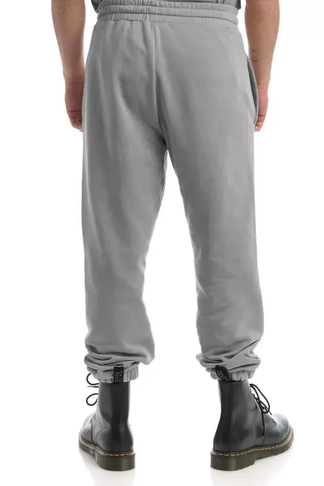Upgrade your casual wardrobe with these chic gray tracksuit trousers, perfect for style-conscious individuals seeking both comfort and elegance. Crafted from premium 100% cotton, they feature a flexible drawstring waist and practical side pockets, topped with a tasteful logo print on the front. Proudly made in Italy, these pants embody quality and craftsmanship.