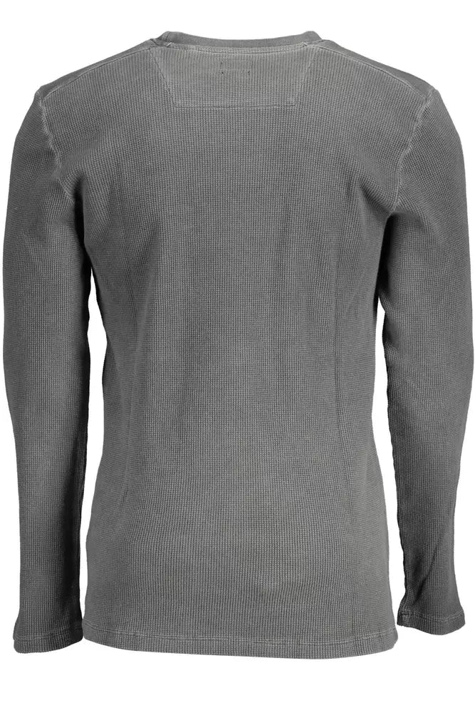 Sleek Gray Crew-Neck Slim Shirt with Embroidery