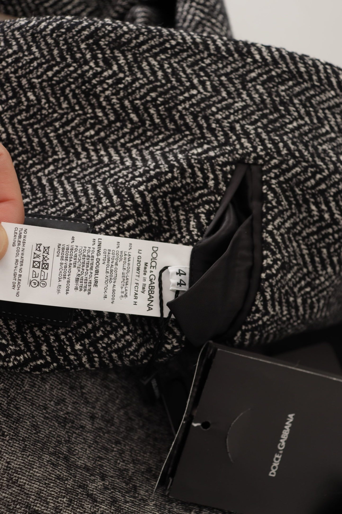 Step out in sophistication with this Dolce & Gabbana single-breasted jacket, a testament to timeless style and luxury. Crafted from a blend of cotton and wool, this piece features a classic notch style lapel, presented in a handsome gray herringbone pattern. With a sharp two-button closure and the brand’s iconic logo detailing, this jacket is the embodiment of Italian elegance and superior craftsmanship.