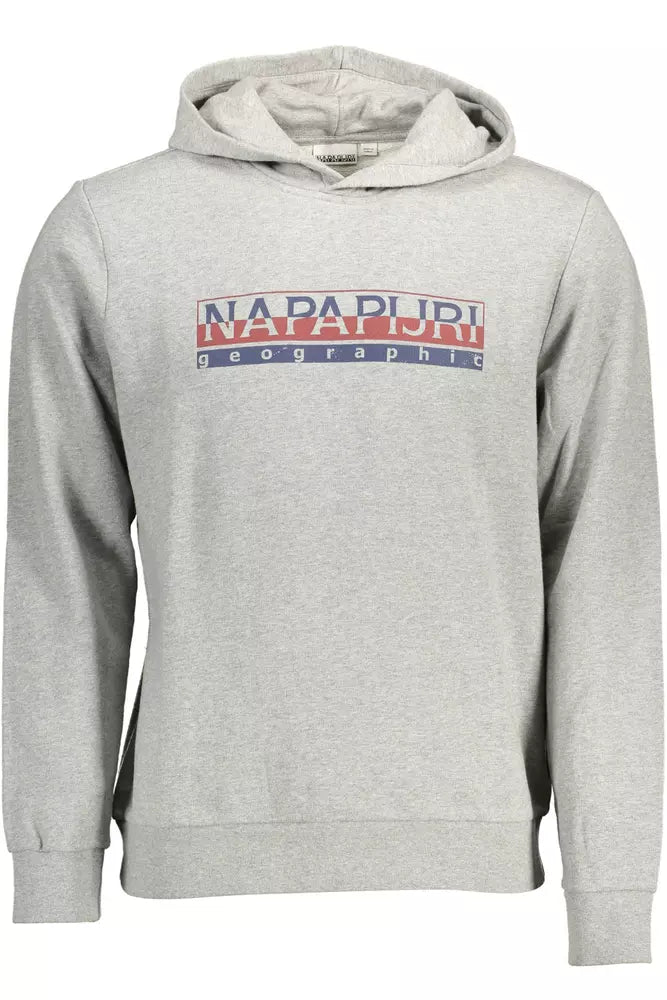 Wrap yourself in the epitome of casual luxury with this long-sleeved, gray hooded sweatshirt. Boasting a bold print and the iconic Napapijri logo, it’s a true staple for anyone seeking both comfort and style.