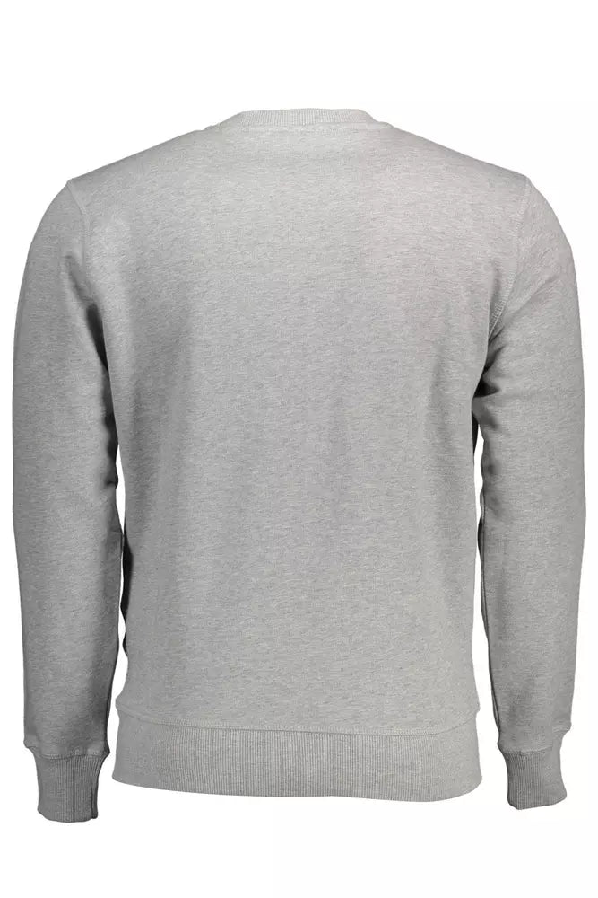 Gray Cotton Crewneck Sweater with Logo Appliqué