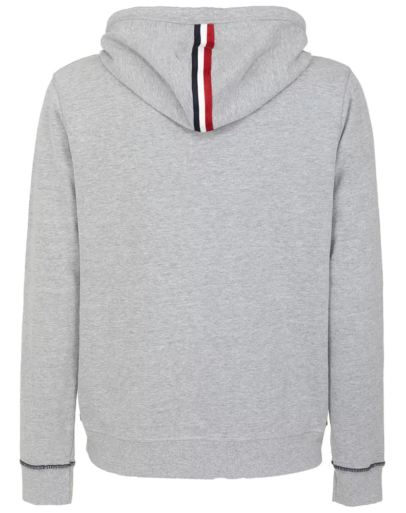 Chic Melange Grey Cotton Hoodie with Chest Embroidery