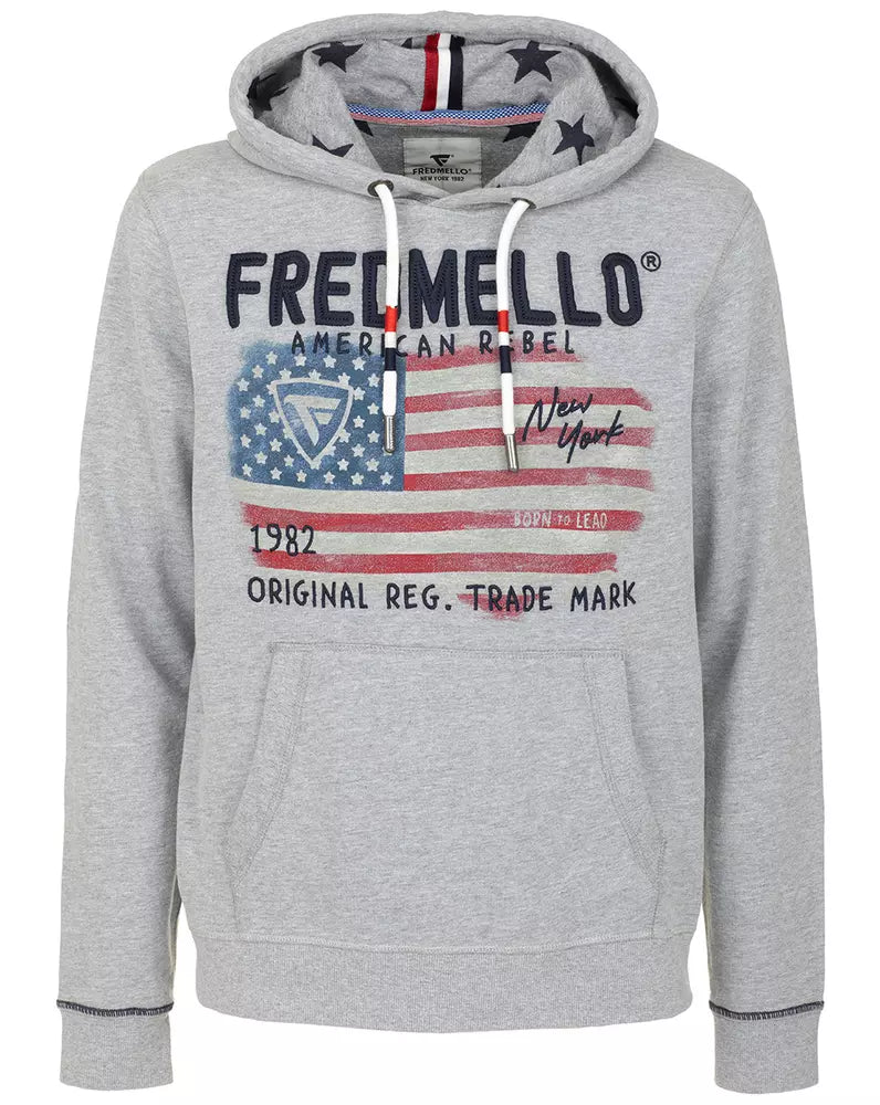 Indulge in the comfort of pure cotton with this melange grey hoodie. Adorned with a distinct print and logo embroidery on the chest, it’s a stylish addition to your wardrobe. The single front pocket and hood with drawstring provide functional touches to this cozy sweatshirt.