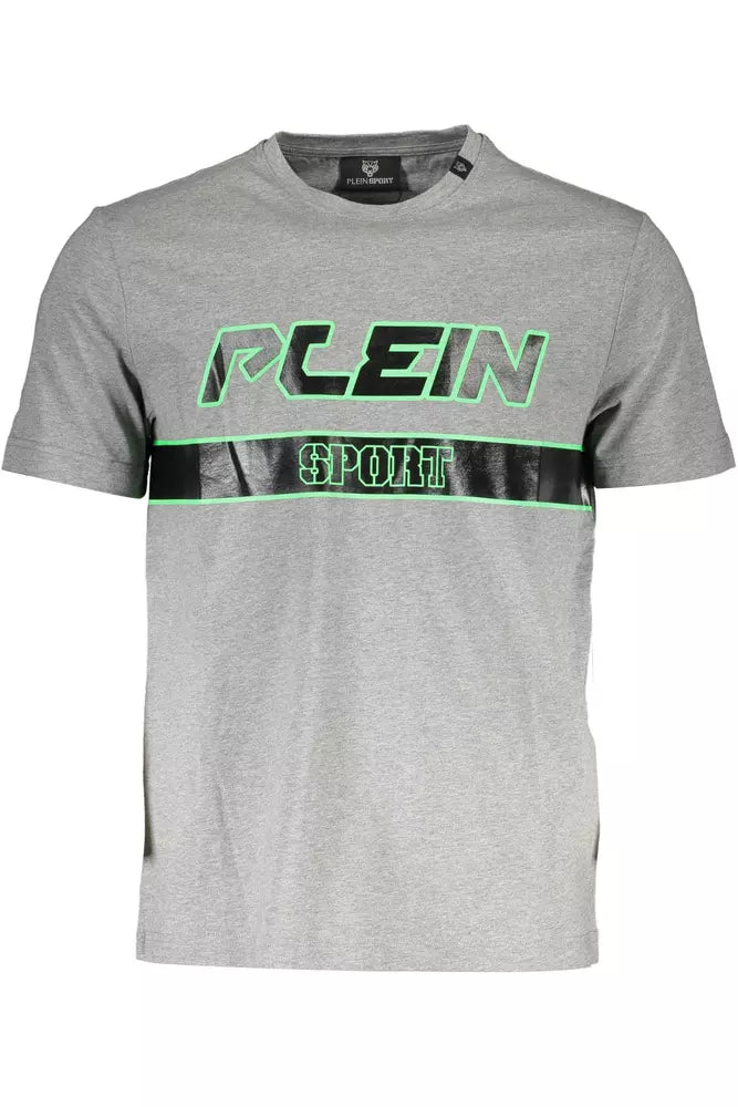 Step up your casual style game with this sleek gray short sleeve t-shirt from Plein Sport. A classic crew neck meets eye-catching print and the iconic logo, making it an effortless addition to your wardrobe essentials.