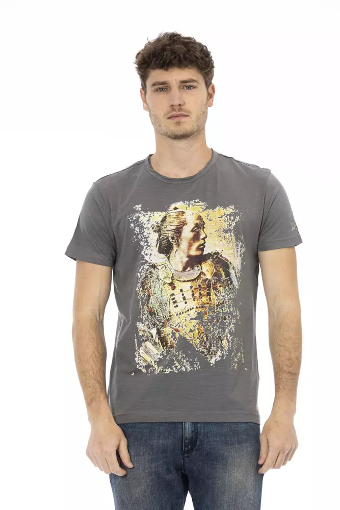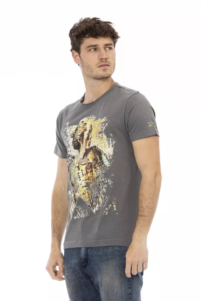 Step up your casual wear with this elegantly simple gray T-shirt from Trussardi Action. Perfect for any laid-back occasion, it features a comfortable round neck and a chic front print that adds a touch of sophistication to your everyday look. Crafted with a premium blend of materials, this tee promises durability and a soft touch against the skin.