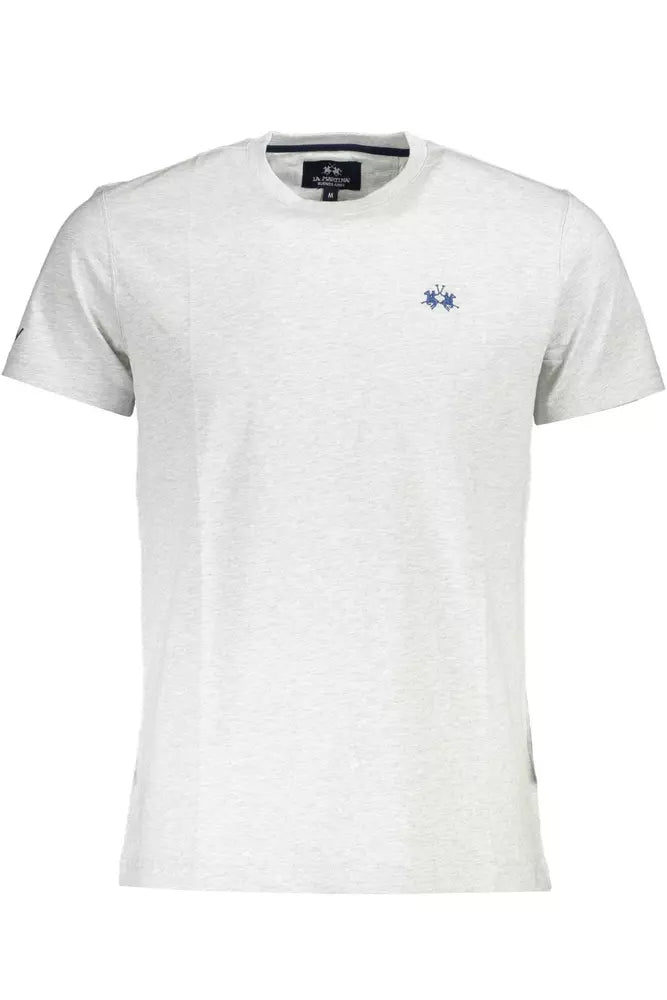 Step into effortless style with this elegant gray t-shirt from La Martina, perfect for those who appreciate a blend of comfort and sophistication. Adorned with intricate embroidery and a distinct logo print, its regular fit and round neck design make it an ideal choice for casual yet fashionable wear.