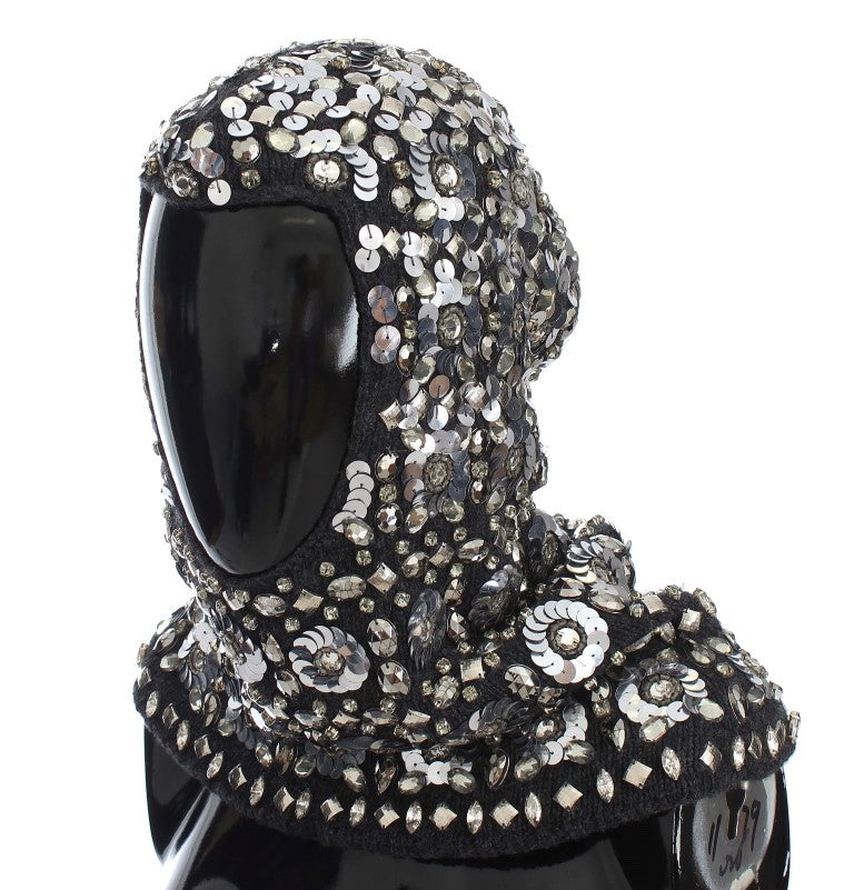 Indulge in the luxury of Dolce & Gabbana with this exquisite gray knitted sequined and crystal hooded scarf wrap. Feel the uniqueness of an item that belongs to the exclusive MainLine collection, designed to add a touch of elegance and glamour to any outfit. Perfect for those who appreciate the blend of sophisticated craftsmanship and stunning detail.