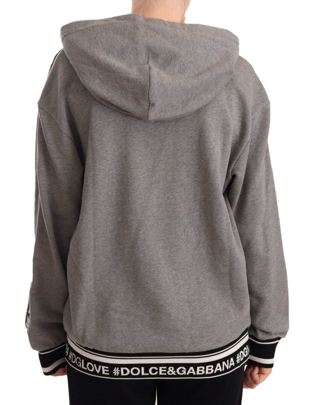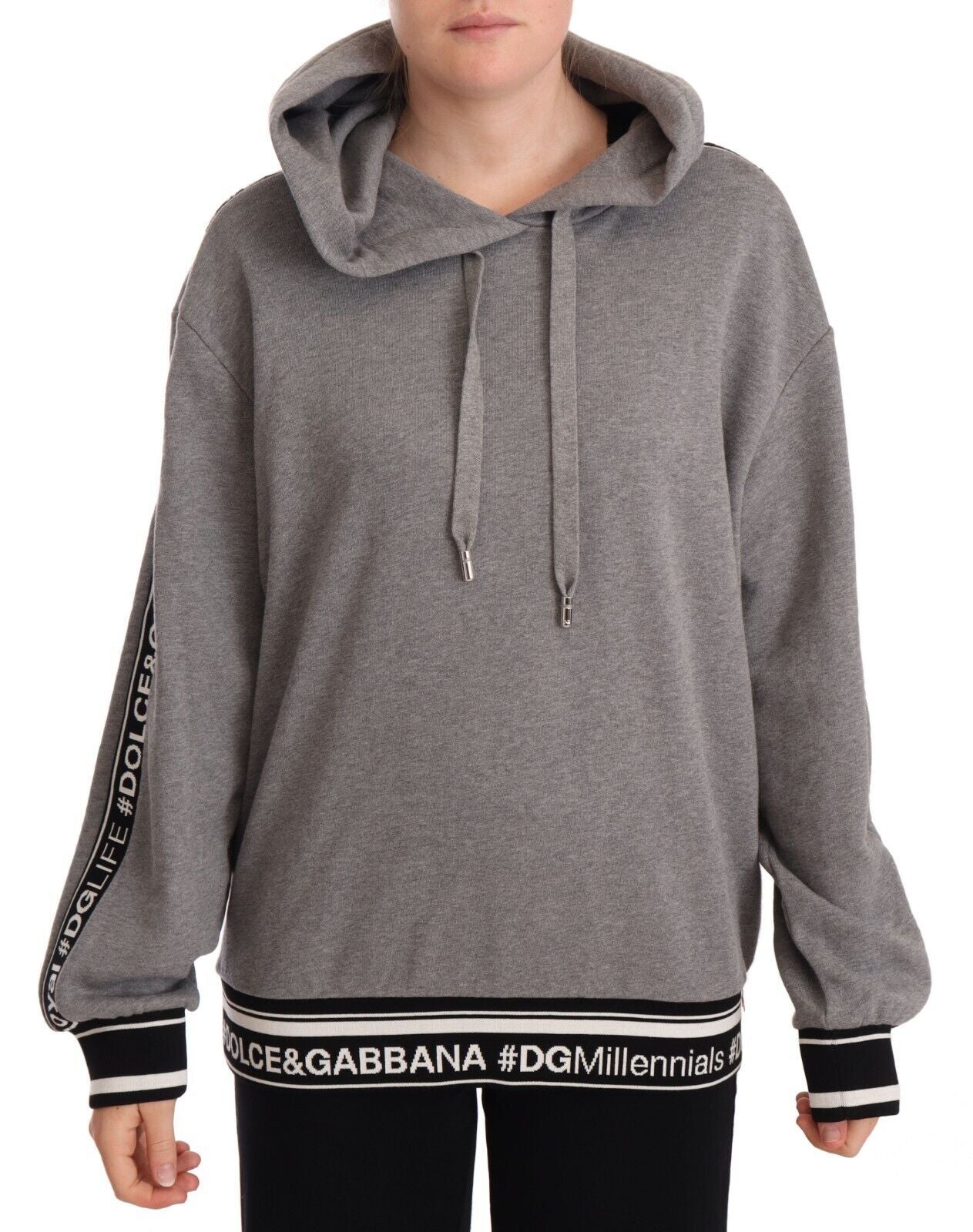 Step out in style with this gorgeous, brand new gray hoodie by Dolce & Gabbana, adorned with sleek black ribbons featuring eye-catching hashtag prints. Perfect for adding a touch of luxury to your casual wardrobe, this sweatshirt is crafted from 100% cotton ensuring comfort and durability. Logo details add an exclusive touch to this made-in-Italy piece. Elevate your everyday look with this unique and trendy pullover.