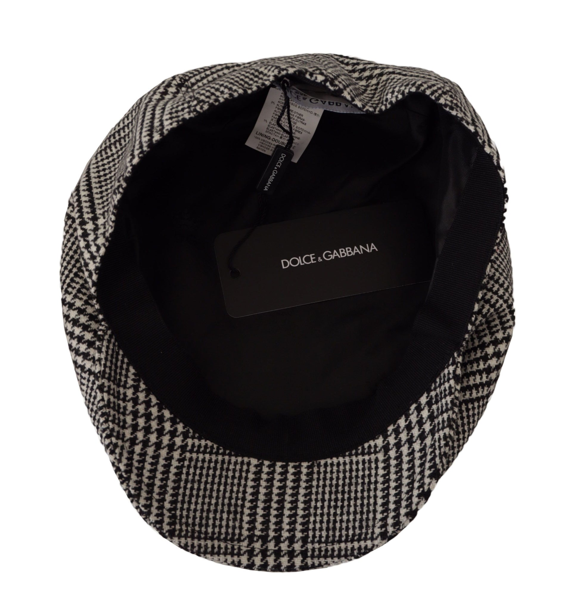 Adorn your attire with the epitome of sophistication – an authentic, brand new Gray Houndstooth Newsboy hat from the exclusive MainLine collection of Dolce & Gabbana. Perfect for adding a touch of luxury to any outfit, this stunning piece is not only a style statement but a testament to the rich Italian craftsmanship of Dolce & Gabbana.