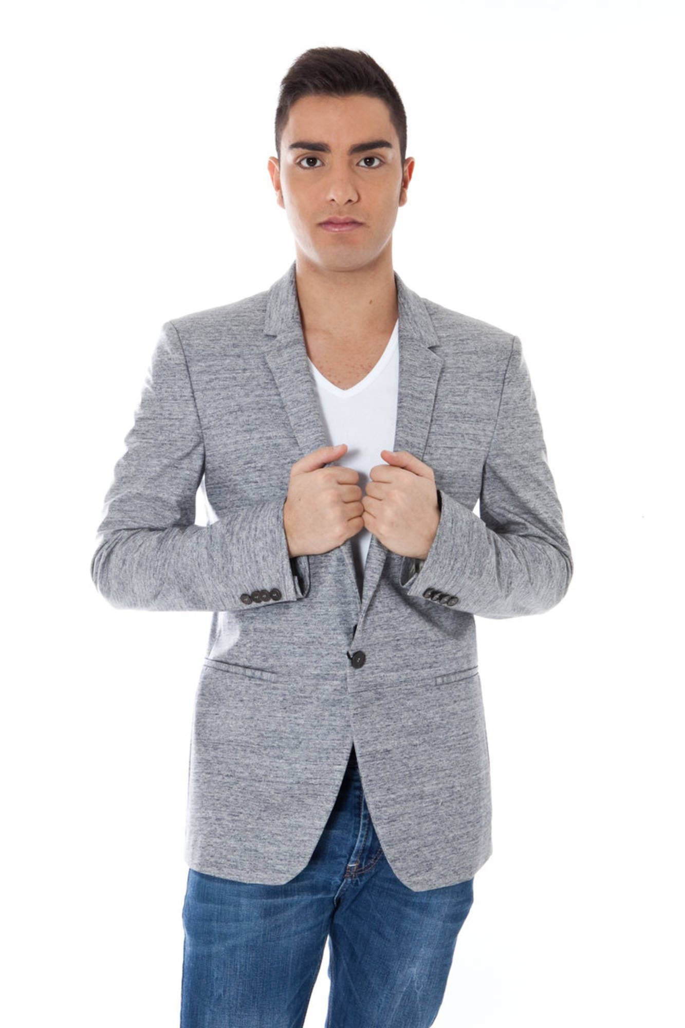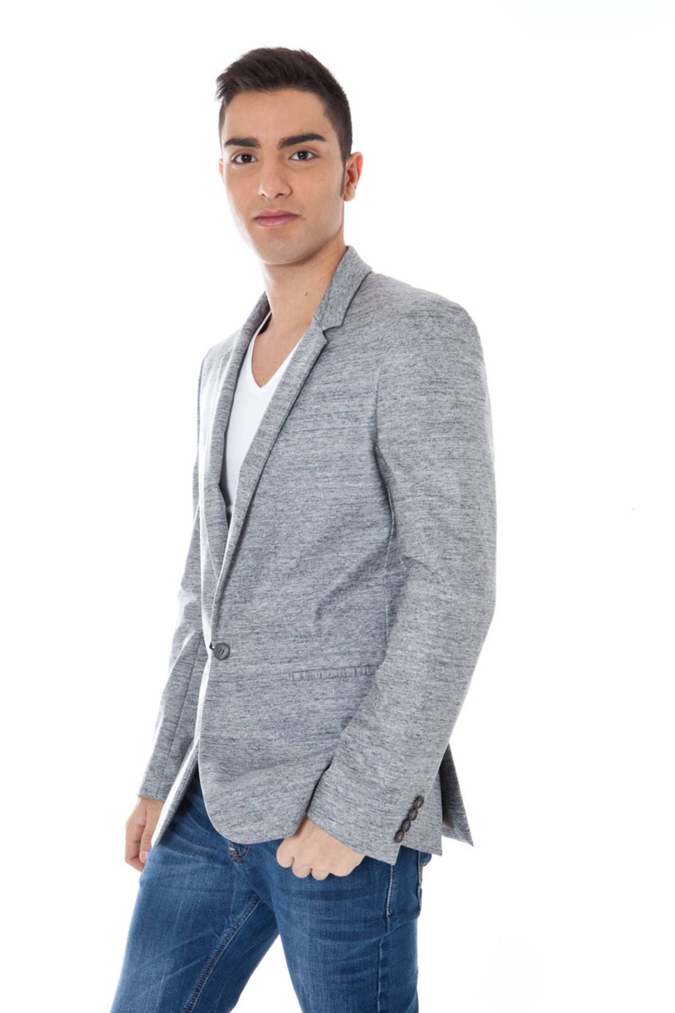 Elegant Gray Cotton Jacket with Long Sleeves
