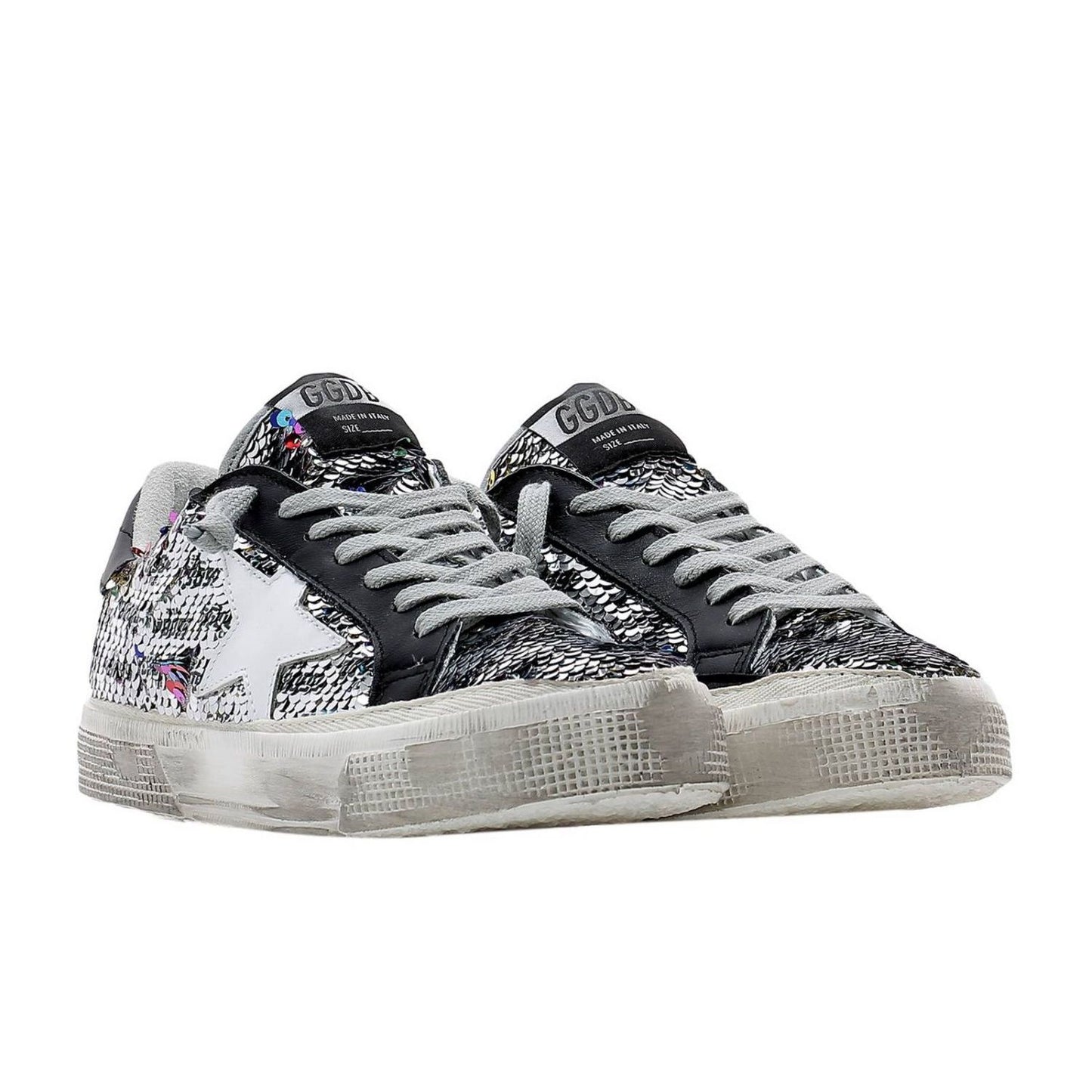 Step out in sparkling style with these dazzling calfskin sneakers, meticulously covered in shimmering sequins. Fashion meets comfort with a supportive heel counter in sleek black leather and the iconic star logo crafted in pristine white leather. Set on a robust rubber sole, these Italian-made beauties are a testament to sophisticated craftsmanship and enduring design.