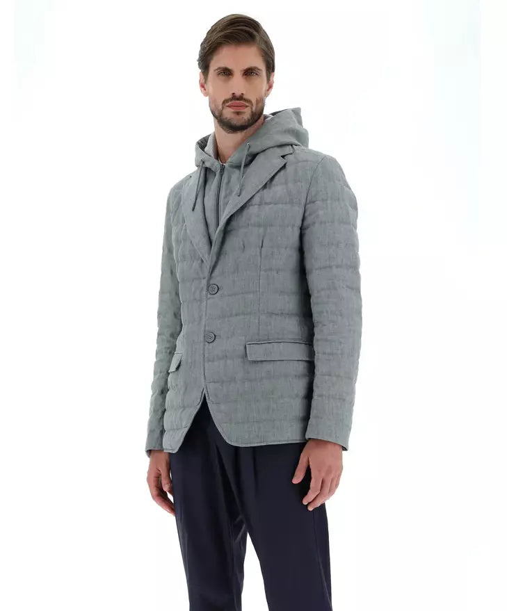 Experience luxury and versatility with our linen bomber jacket, perfect for spring’s ever-changing weather. Crafted with impeccable attention to detail, this sophisticated outerwear features a detachable hood, providing you with two distinct looks. The suave button and zip closure ensure a seamless fit, complemented by a detachable faux inner waistcoat for an added layer of style. Its sleek nylon lining offers comfort and durability, while two front pockets add functionality without compromising on elegance. Proudly made in Italy, this jacket is a testament to timeless fashion and expert craftsmanship.