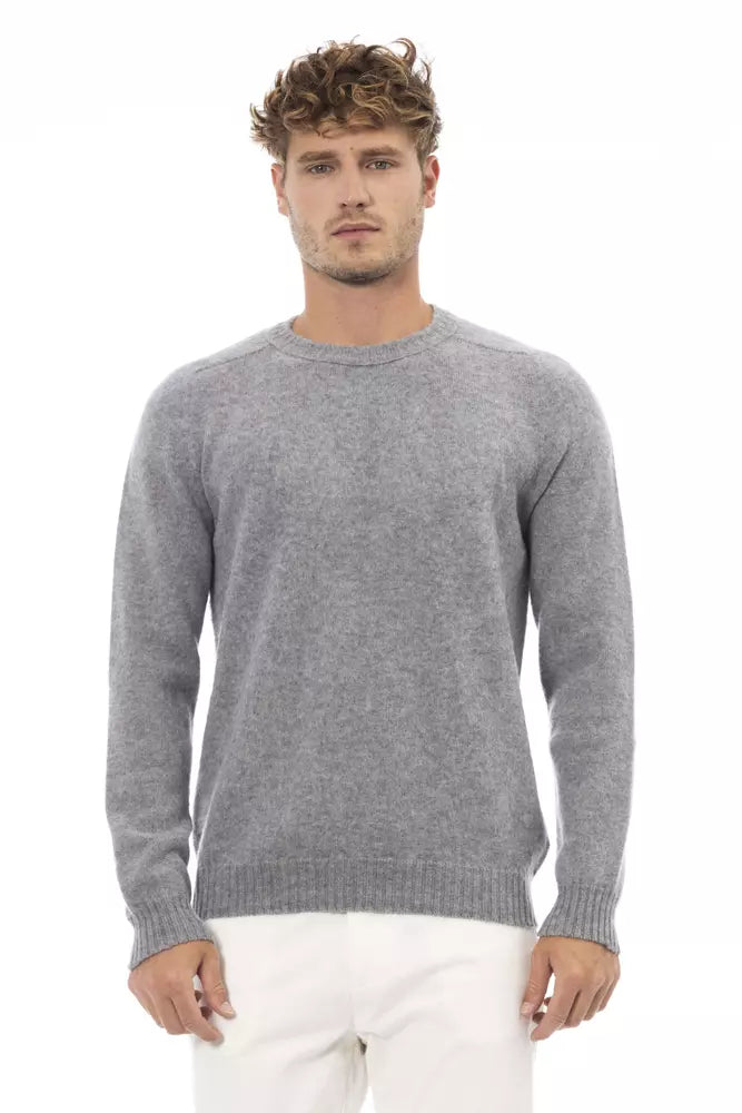 Indulge in the epitome of sophistication with Alpha Studio’s Charcoal Crewneck Sweater. It’s a perfect blend of timeless style and cozy comfort, featuring long sleeves, a snug ribbed collar, and a finely ribbed hem and cuffs for an impeccable fit. Crafted in Italy, this sweater promises quality and elegance for the discerning gentleman.