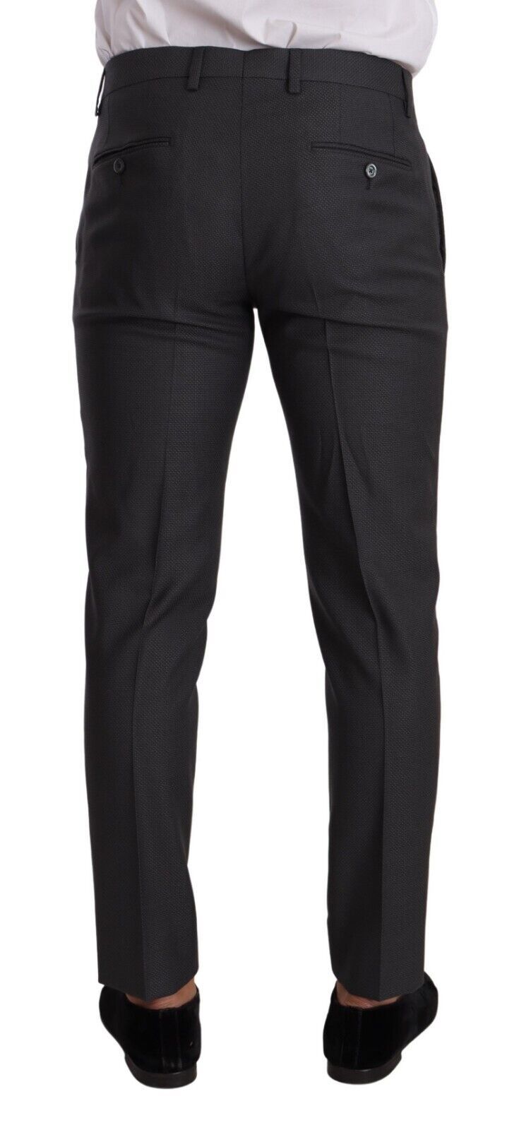 Elevate your style with this sophisticated Dolce & Gabbana Martini Suit. Meticulously crafted in Italy, this gray ensemble features a slim-fit design for an exceptionally tailored look. The double-breasted blazer showcases peak lapels for a sharp silhouette, complemented by a two-button closure.