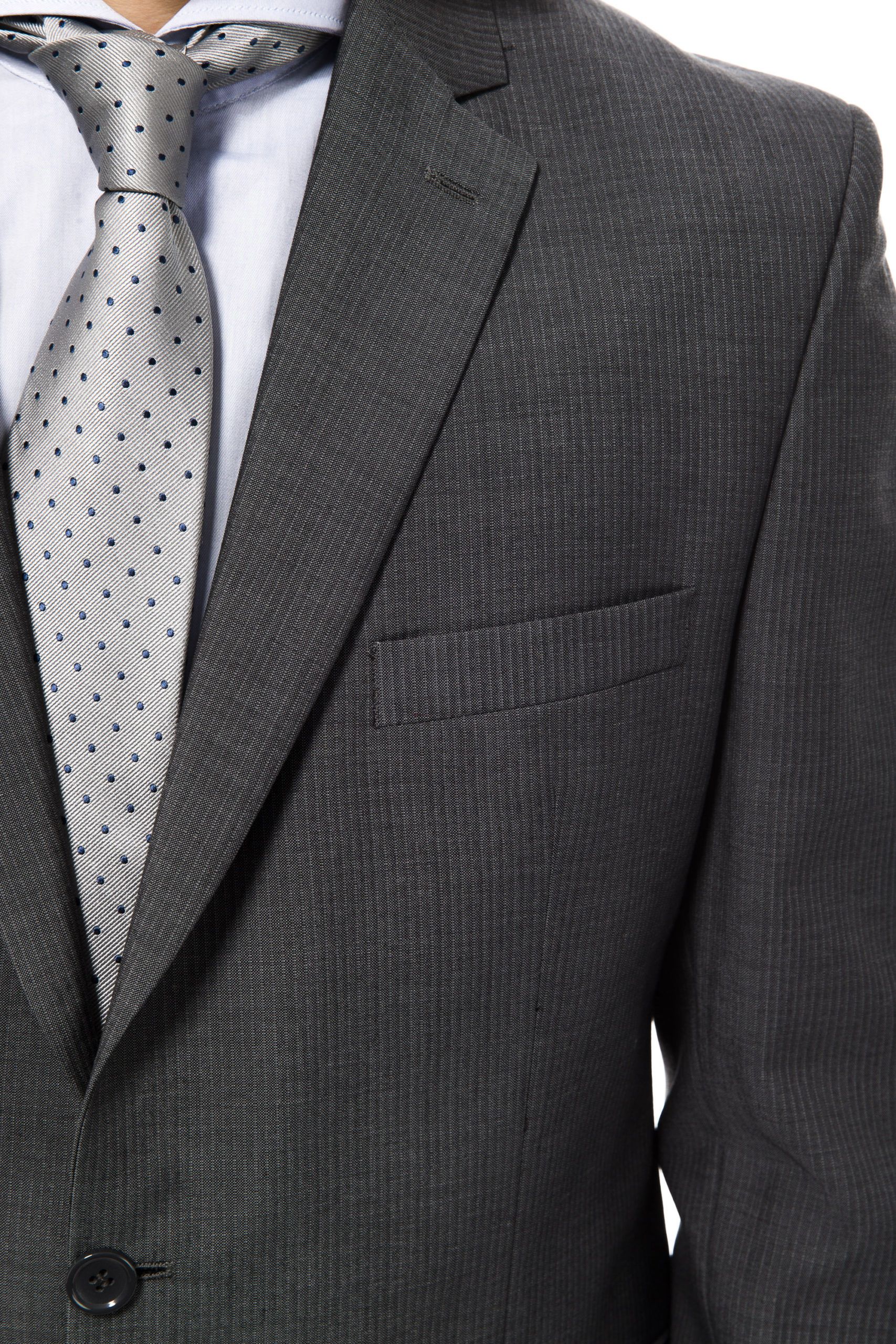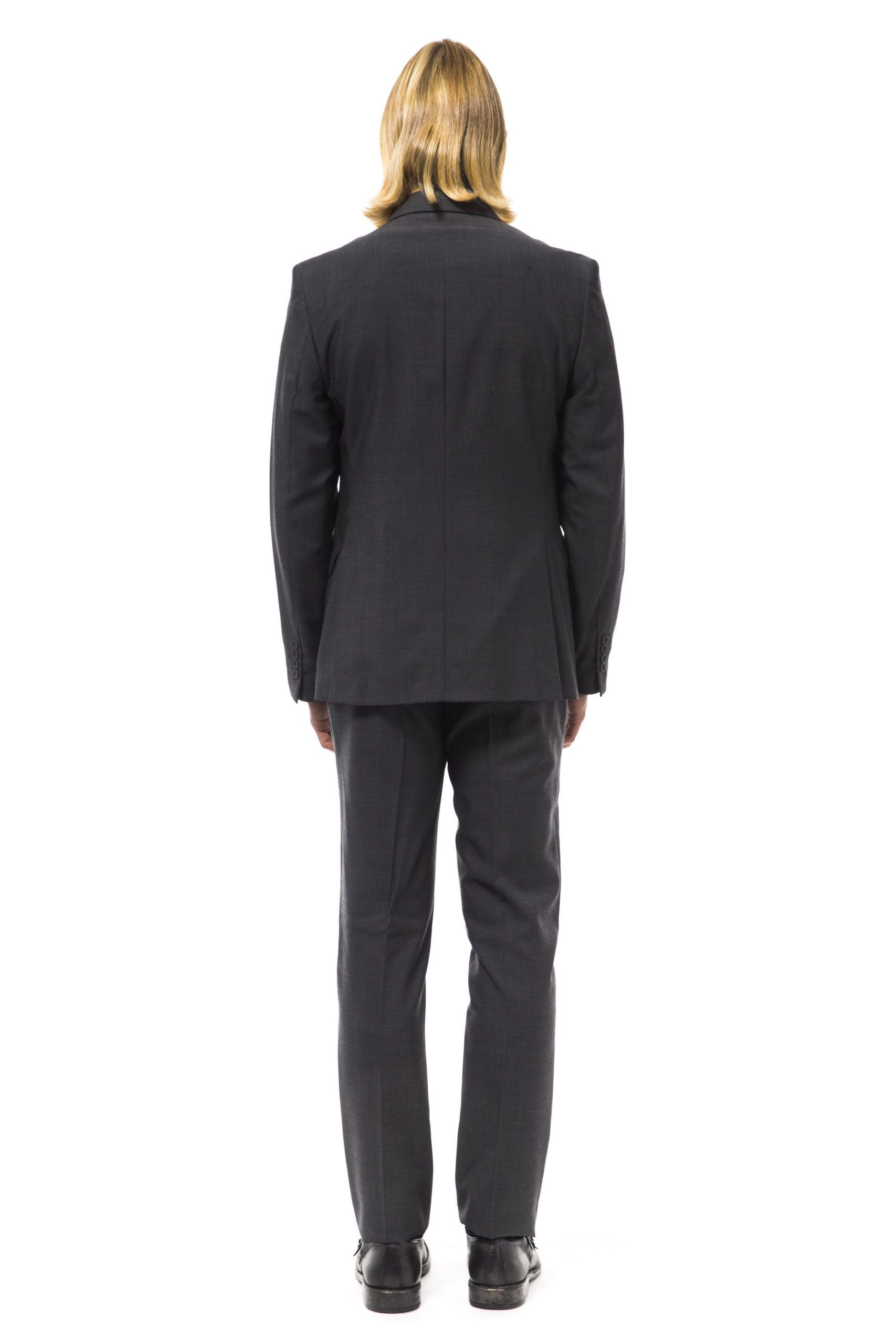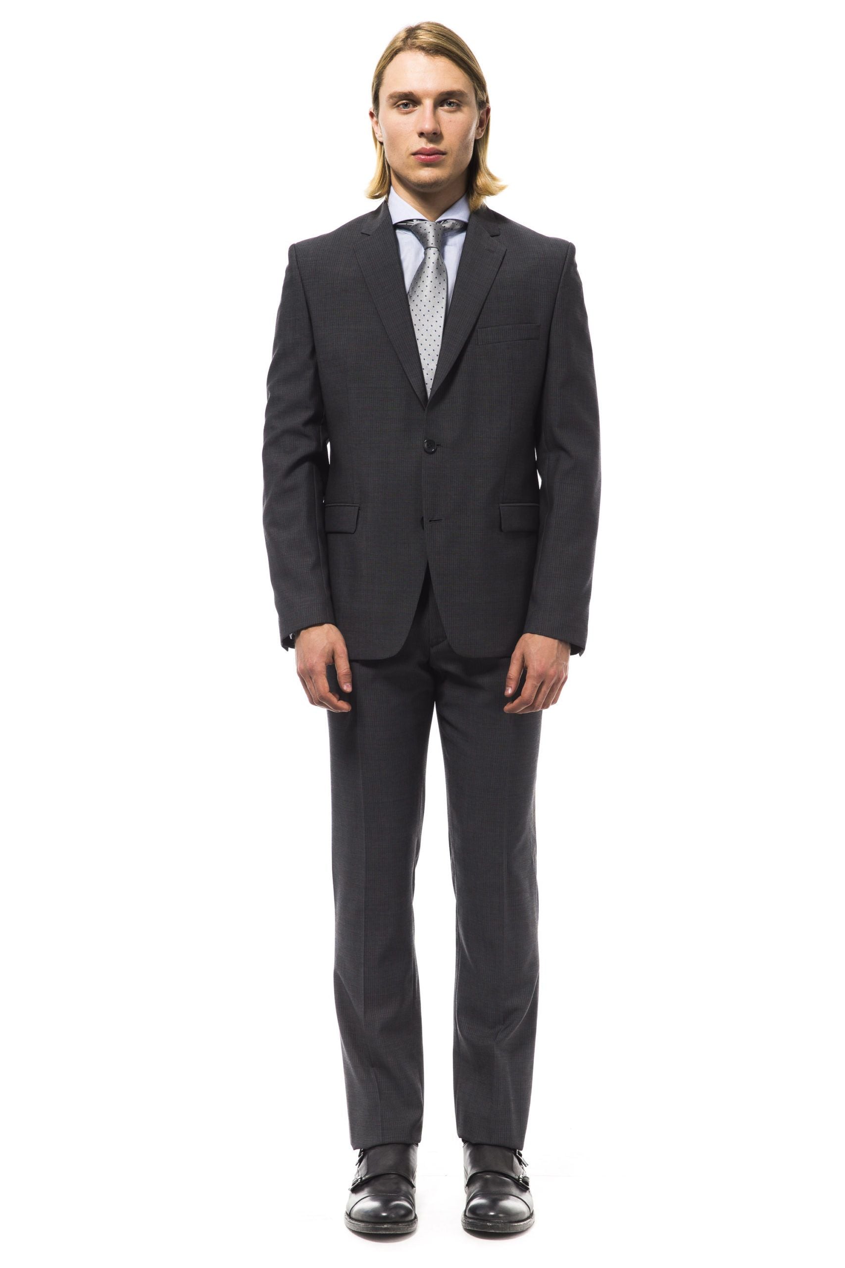 Dress to impress with Uominitaliani’s finely crafted suit set, tailored for a distinguished slim fit profile. This ensemble features a two-button jacket with classic lapels, front flap pockets, along with interior pockets for added functionality. The pants are designed with meticulous attention to detail, offering a zip and button closure, belt loops, front pockets, and sophisticated double welt back pockets with buttons, all in a versatile gray hue. Ideal for business or formal events, this virgin wool fabric suit is a testament to impeccable Italian craftsmanship.