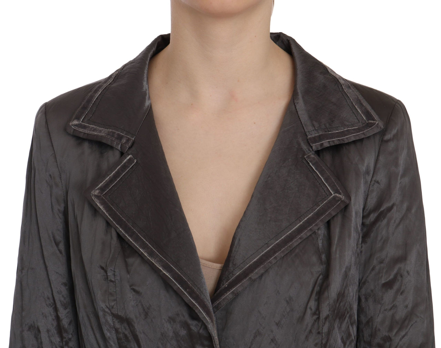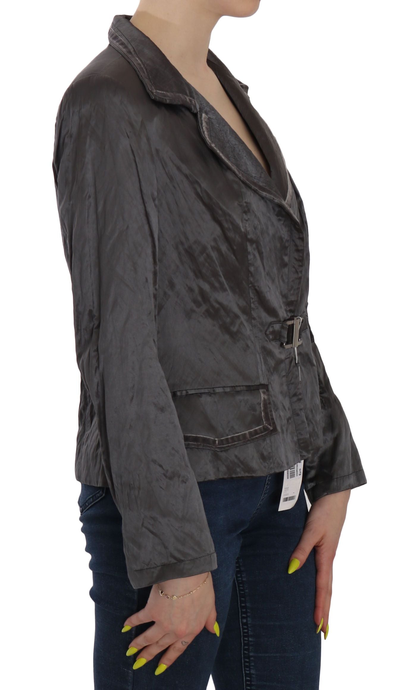Elegant Metallic Grey Wool Blazer Jacket